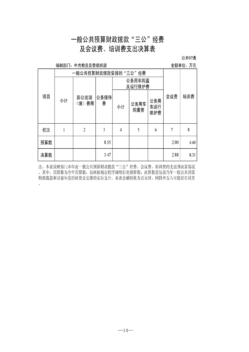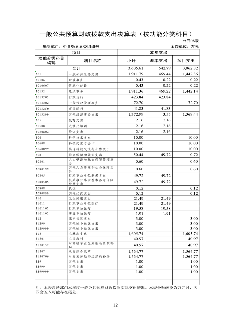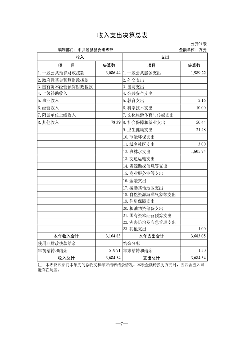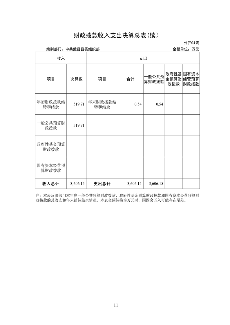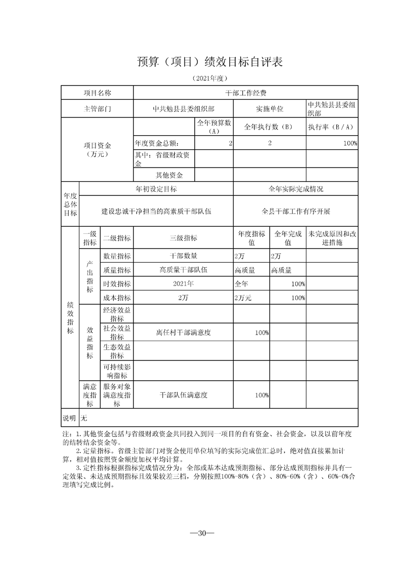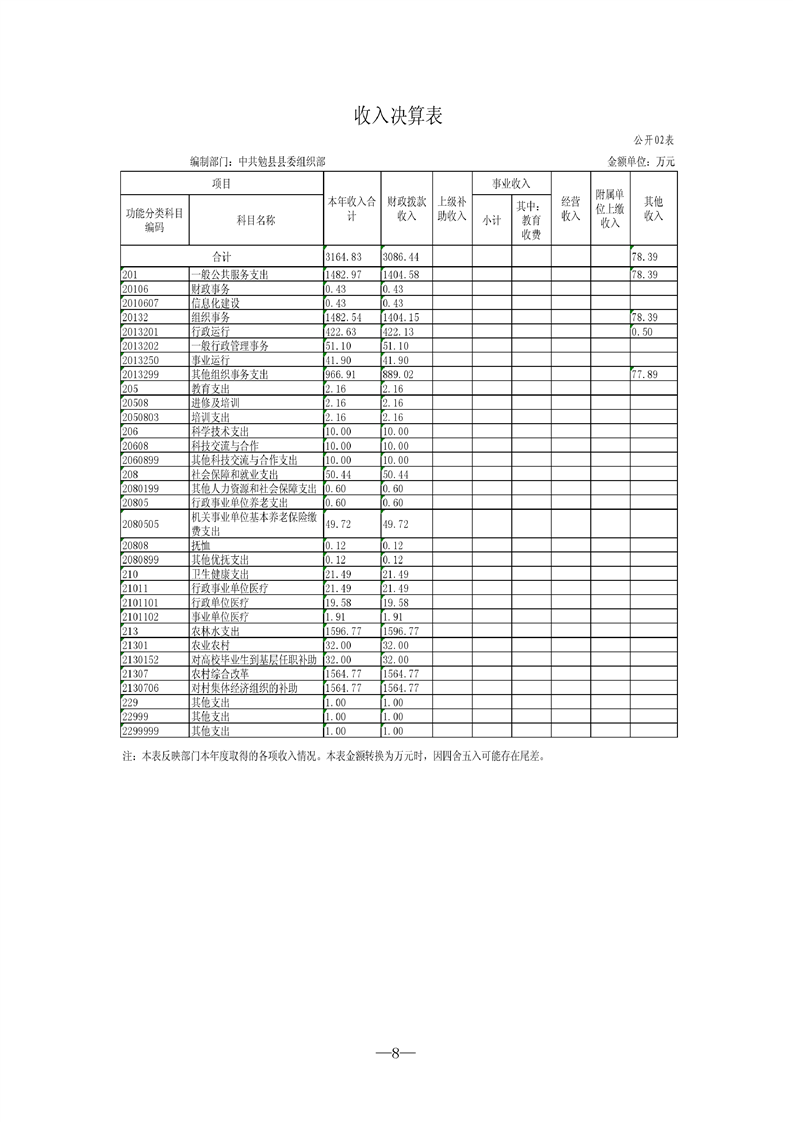 中共勉县县委组织部2021年度部门决算