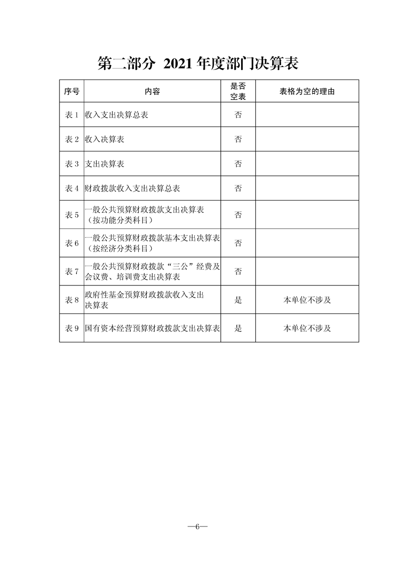 2021年县级部门决算公开目录