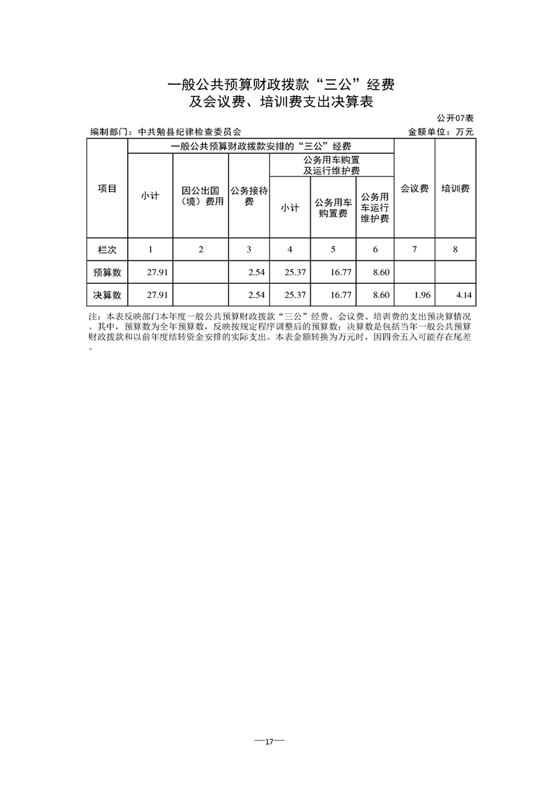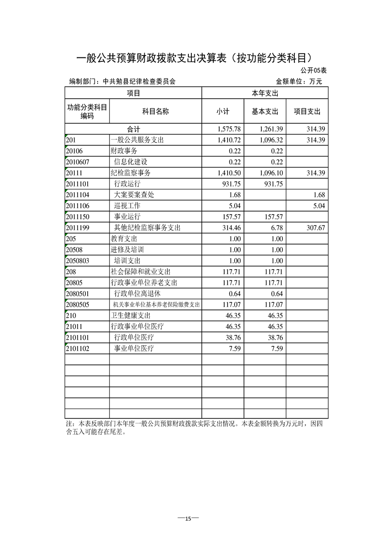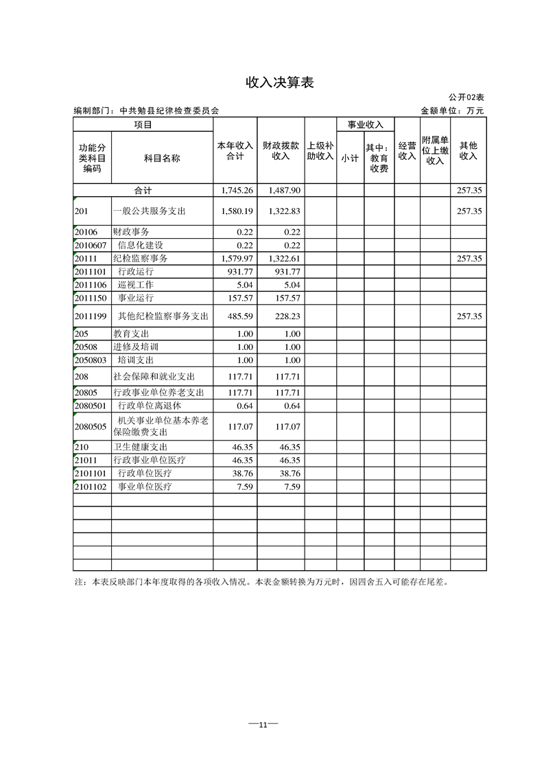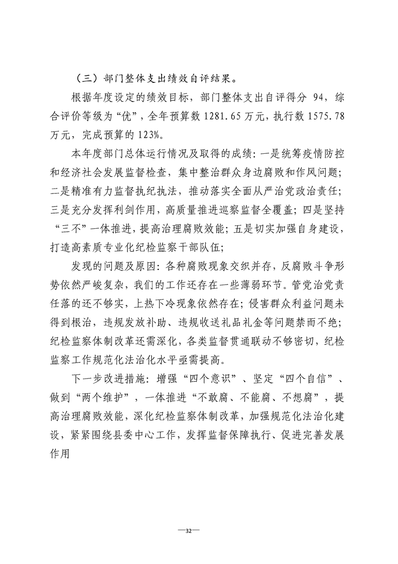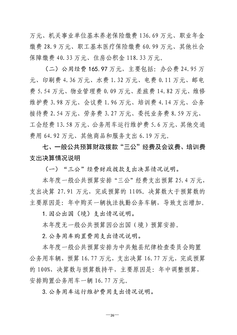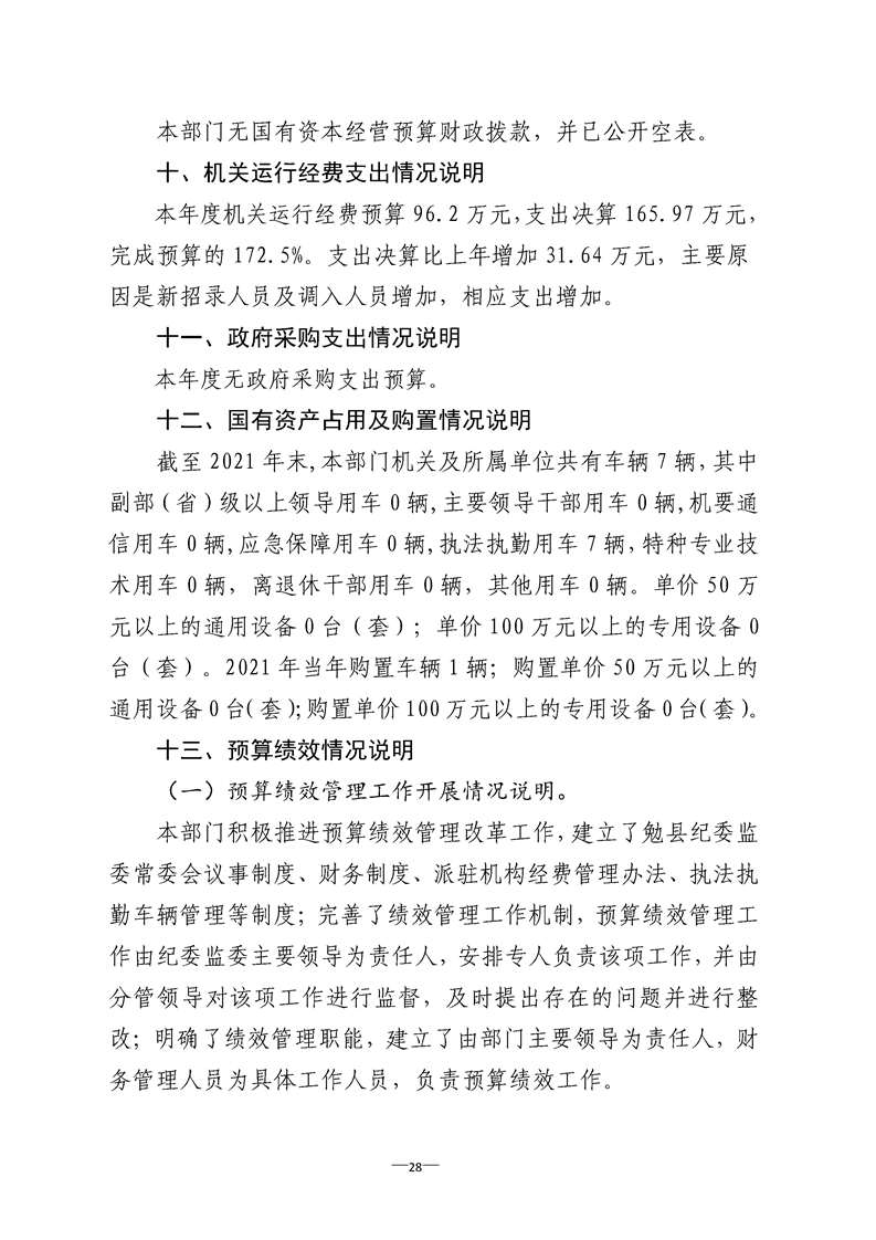 中共勉县纪律检查委员会(勉县监察委员会)2021年度部门决算