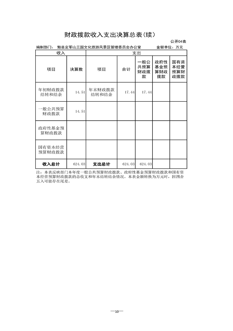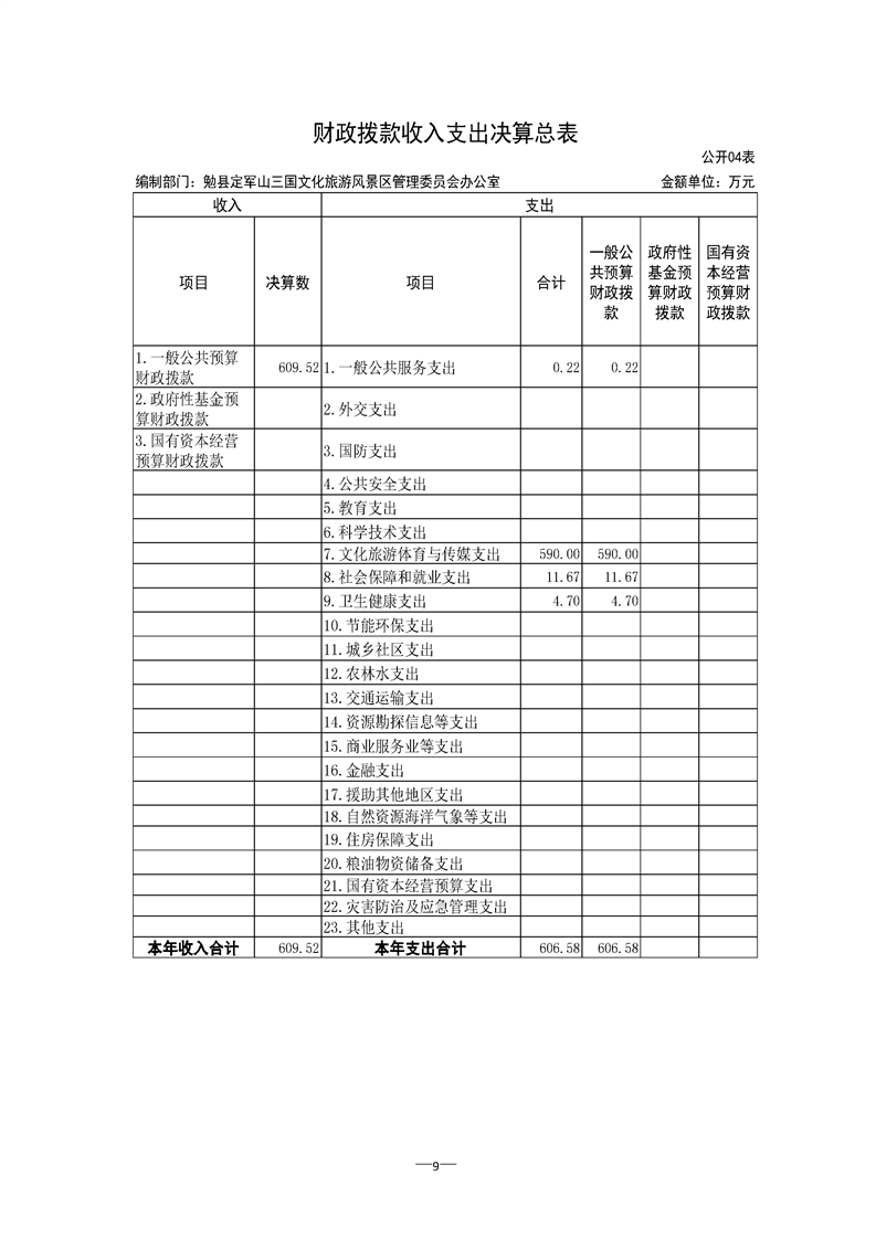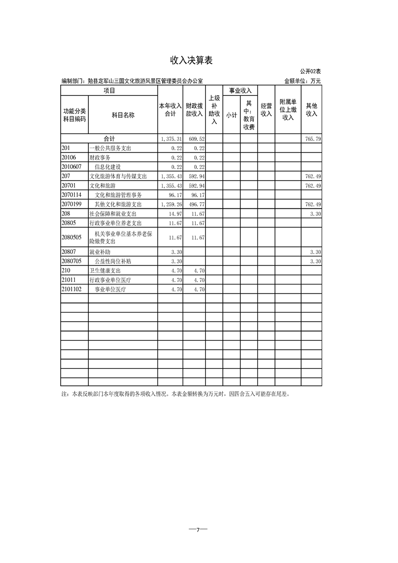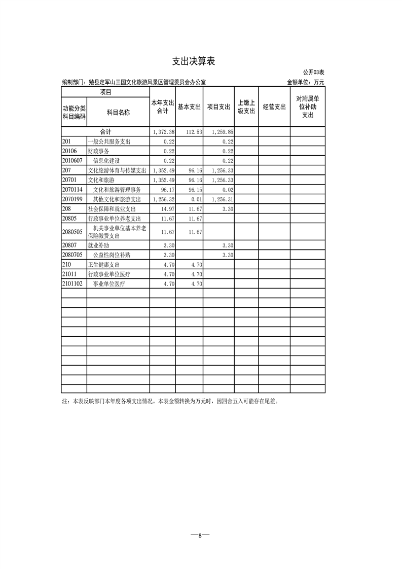 勉县定军山三国文化旅游风景区管理委员会办公室2021年部门决算