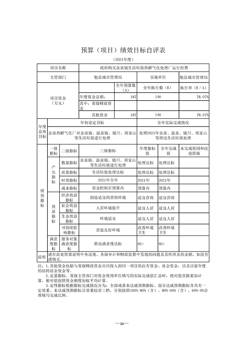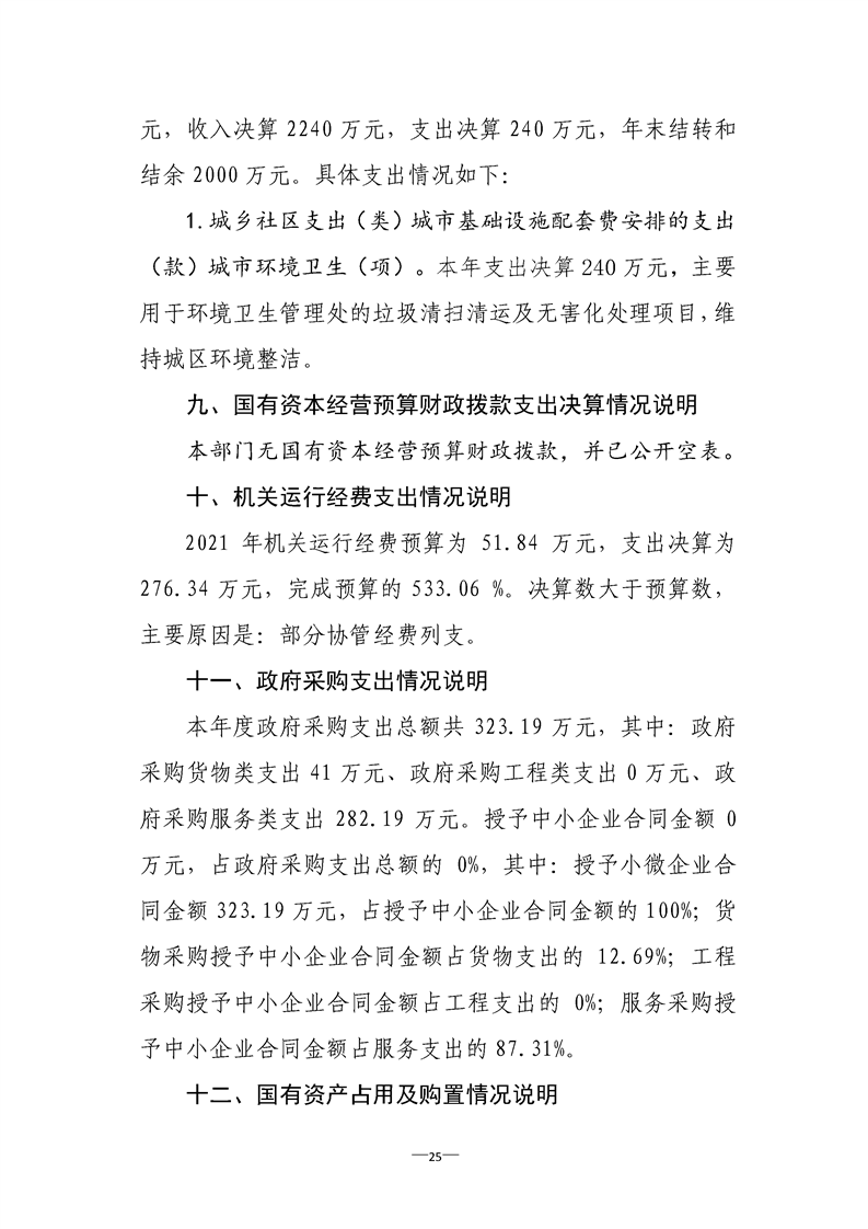 勉县城市管理局2021年度部门决算公开