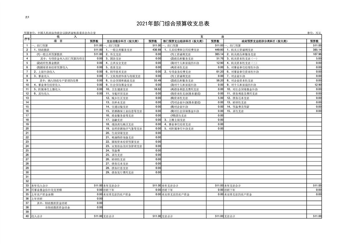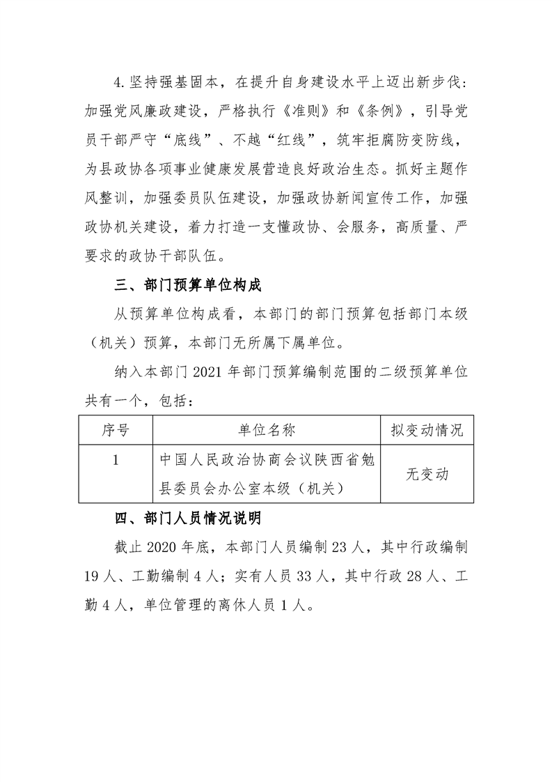 中国人民政治协商会议陕西省勉县委员会办公室2021年部门综合预算