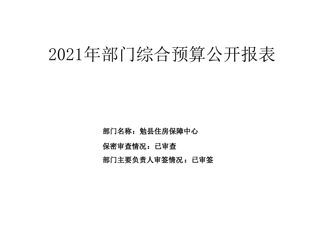 勉县住房保障中心2021年部门综合预算公开