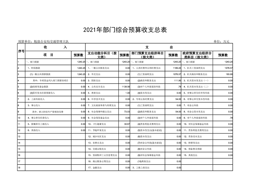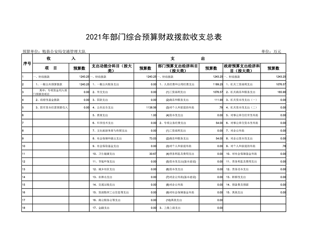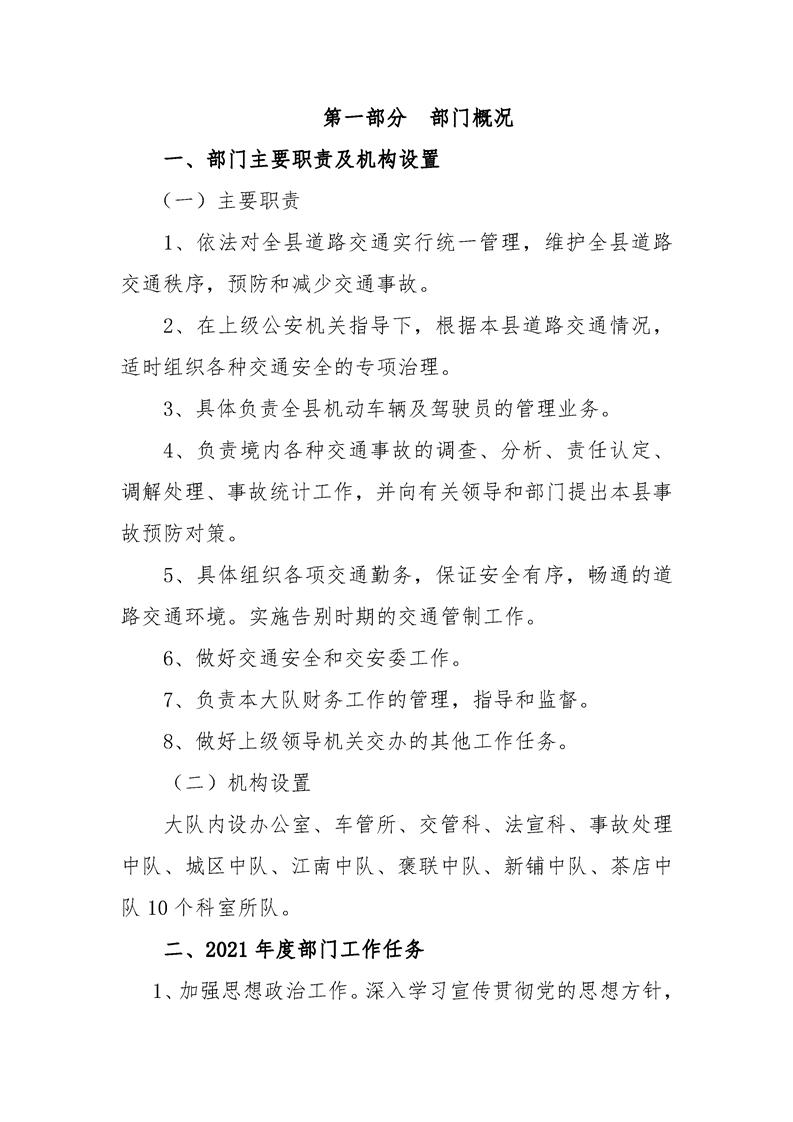 勉县公安局交通管理大队2021年部门综合预算