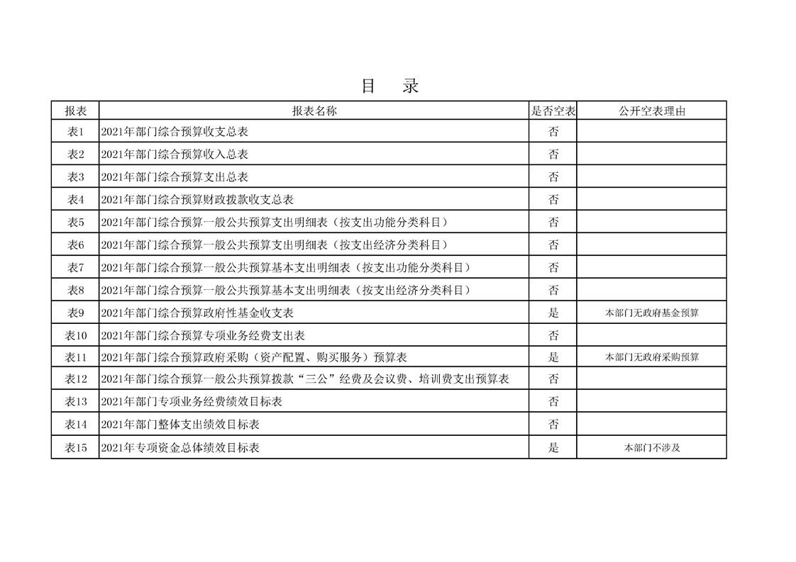 2021年县级部门预算公开目录