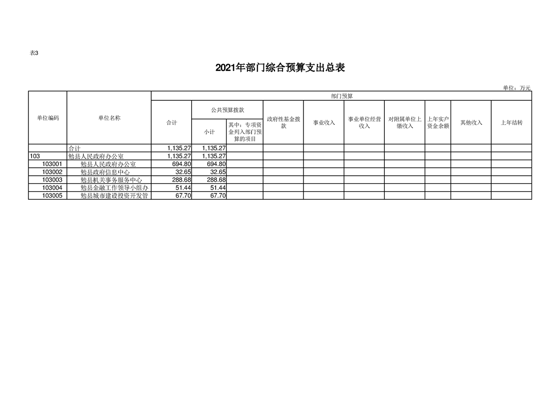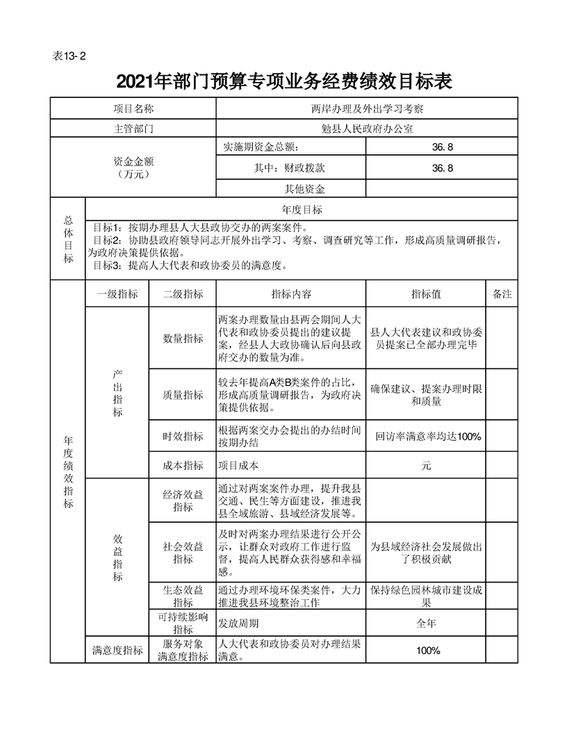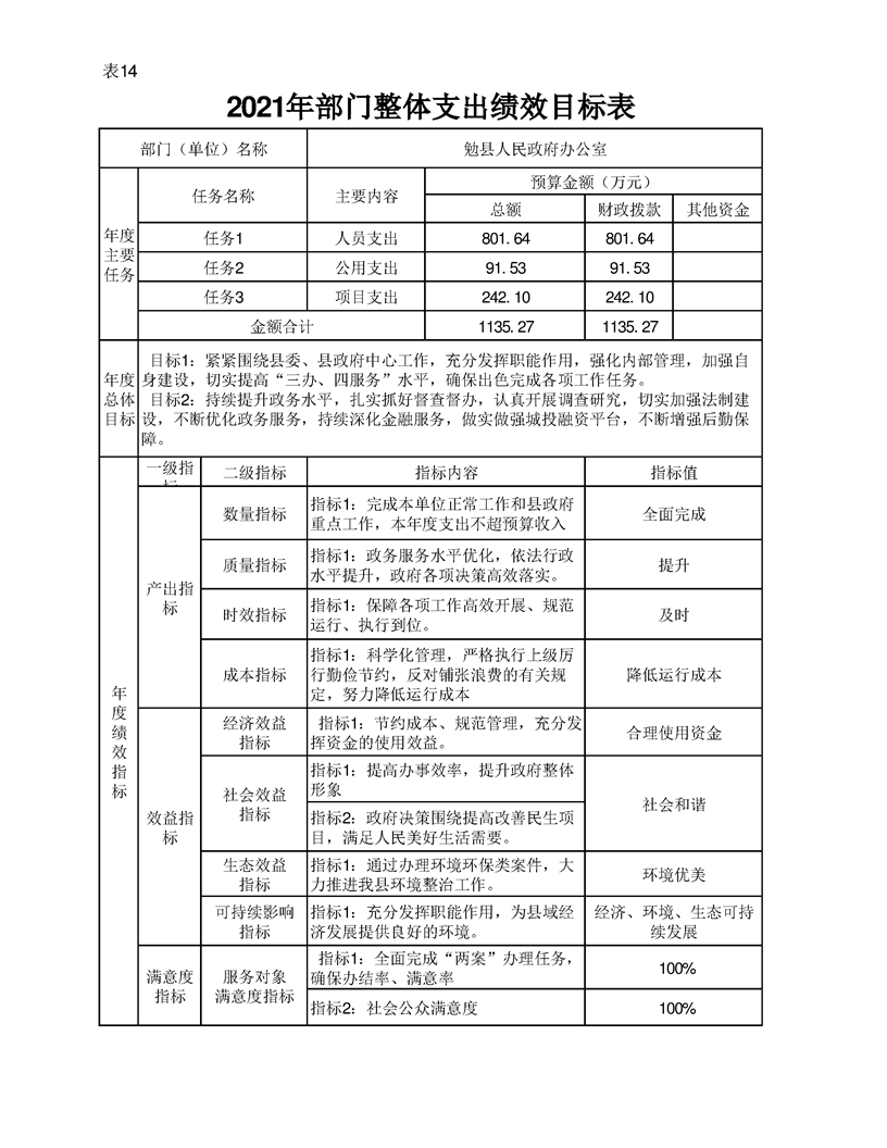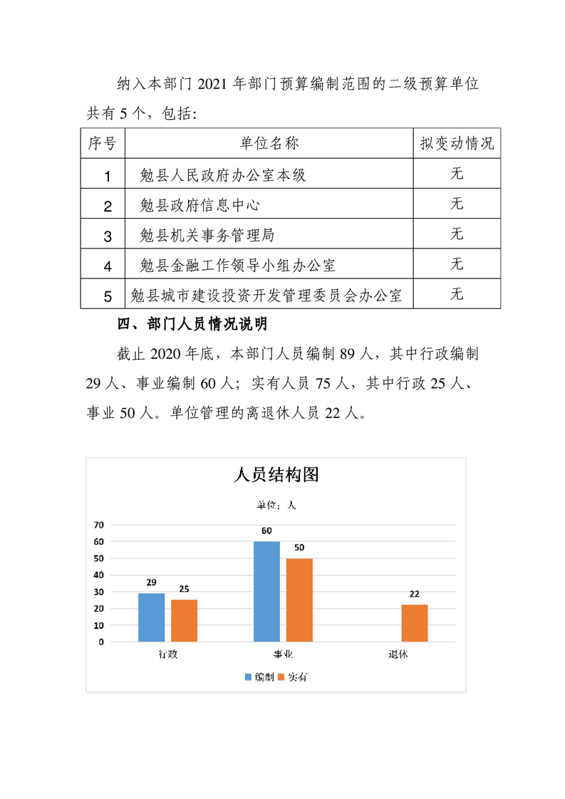 勉县人民政府办公室2021年部门综合预算