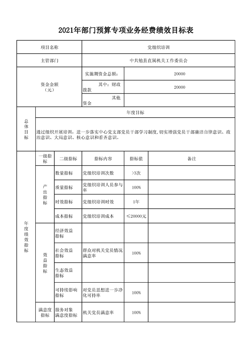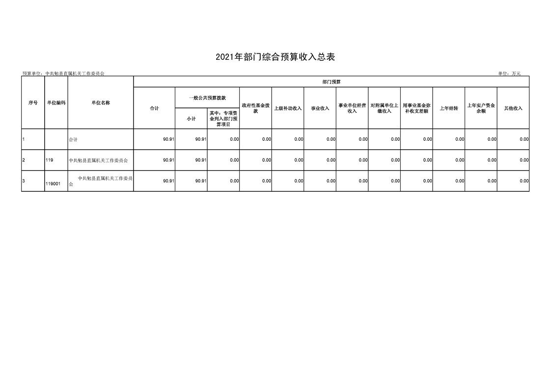中共勉县直属机关工作委员会2021 年部门综合预算