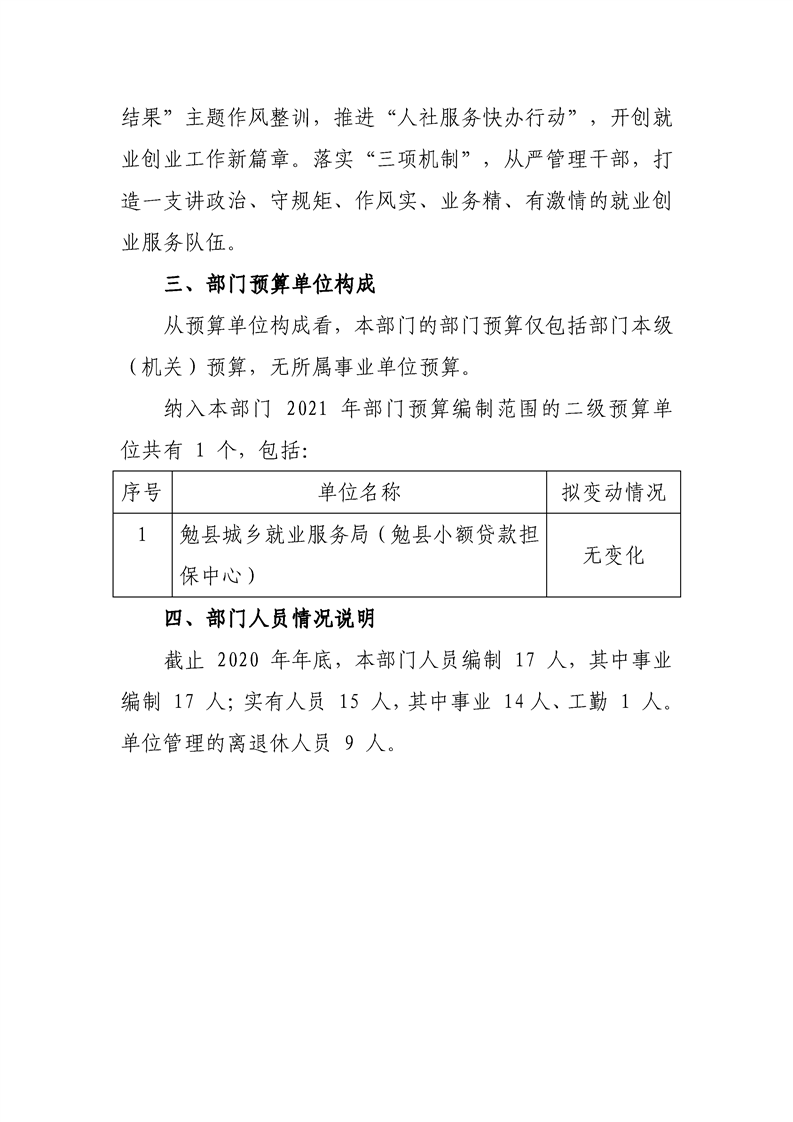 勉县城乡就业服务局(勉县小额贷款担保中心)2021年部门综合预算