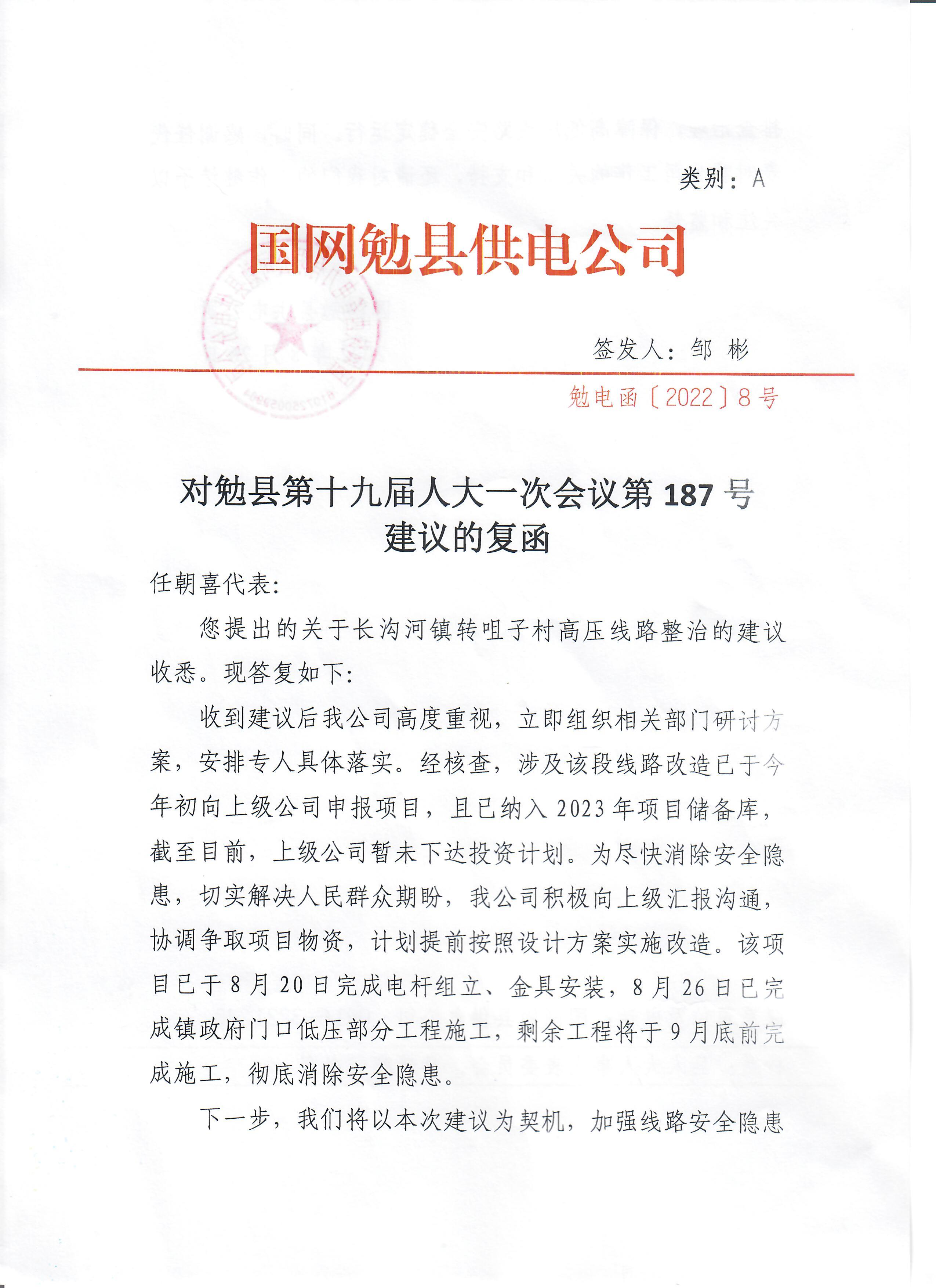 关于长沟河镇转咀子村高压线路整治的建议