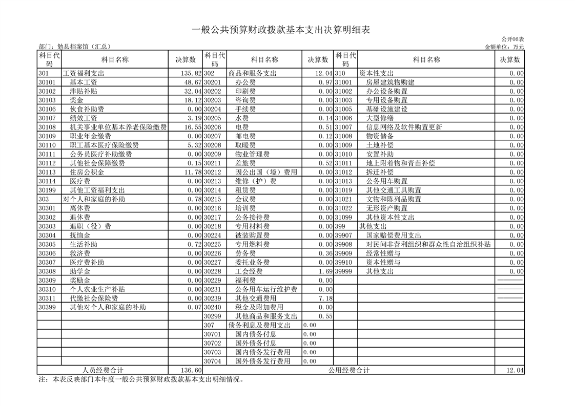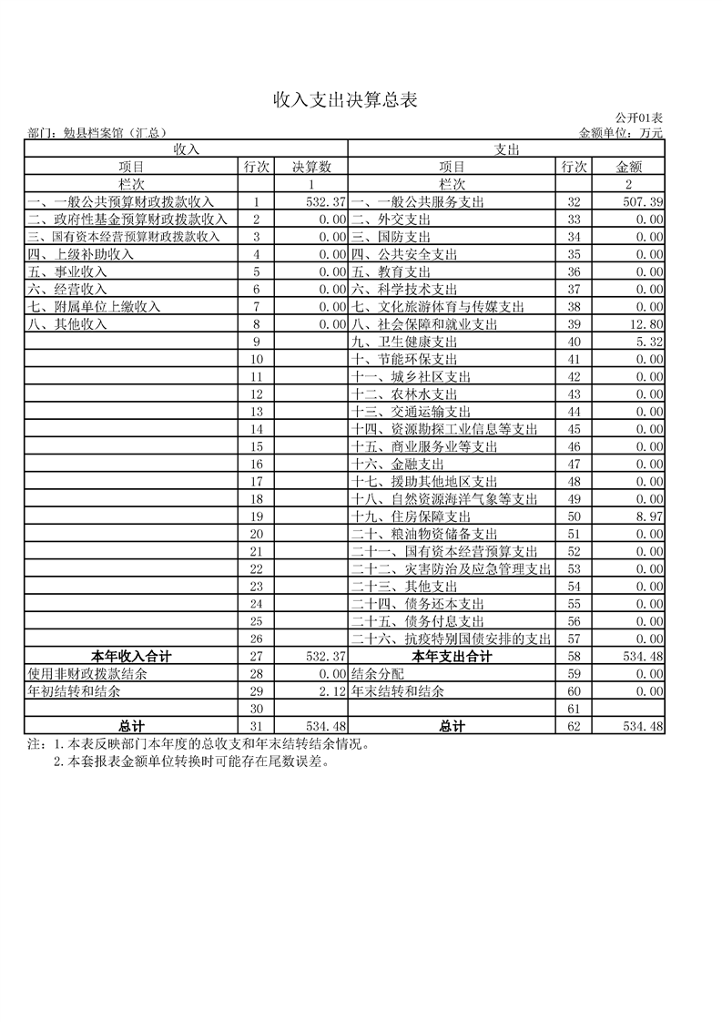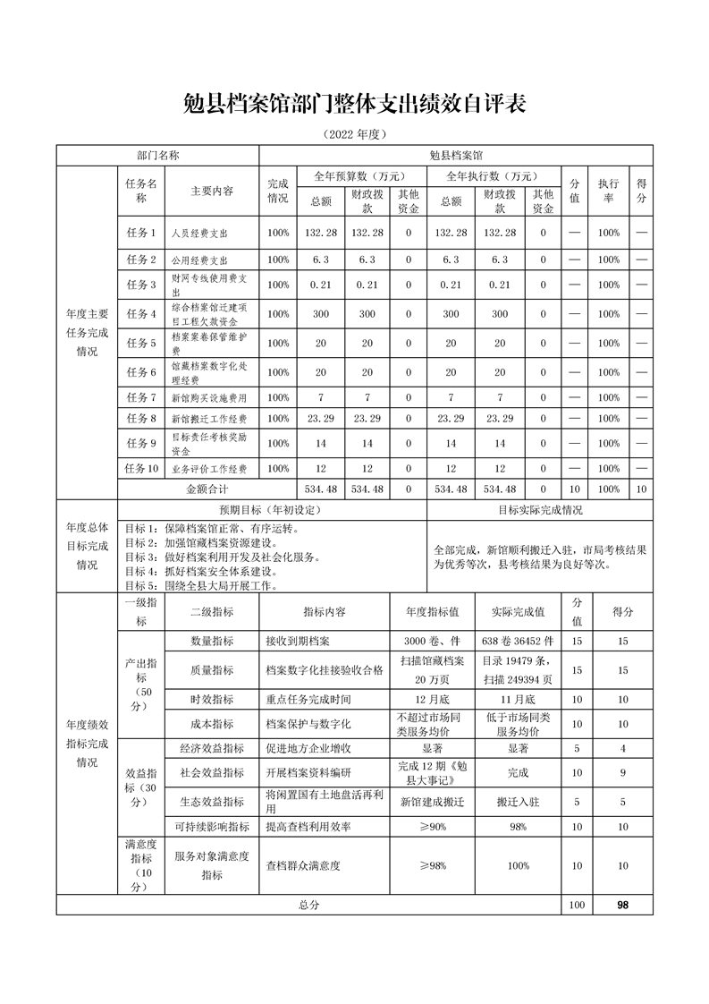 勉县档案馆2022年度部门决算公开