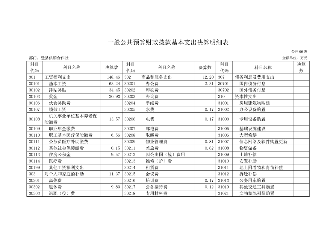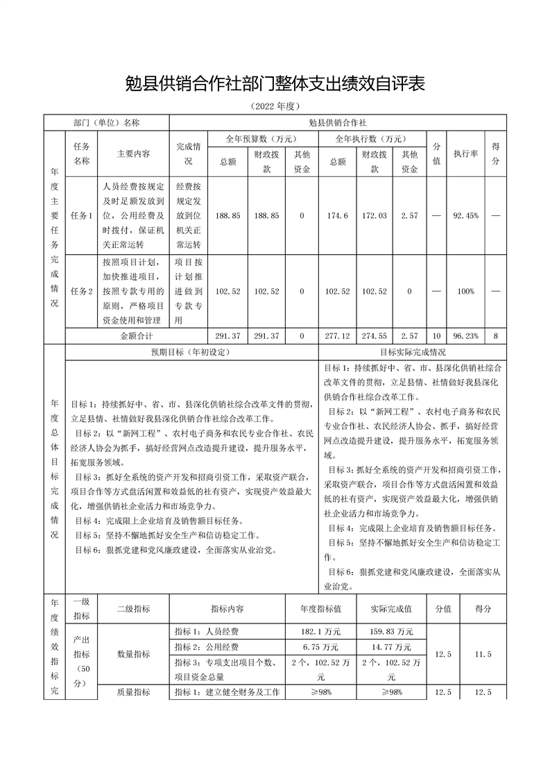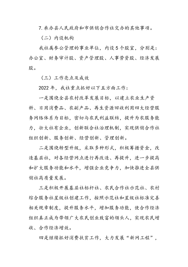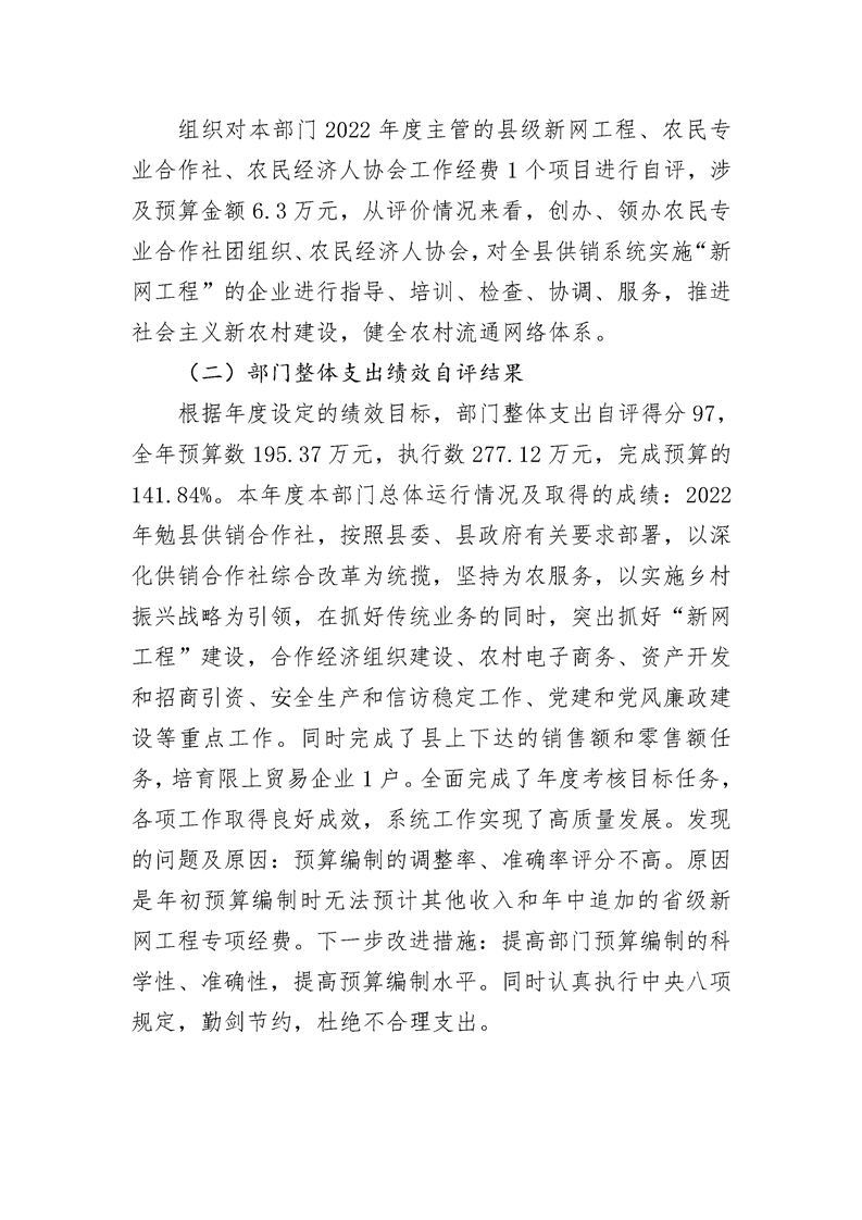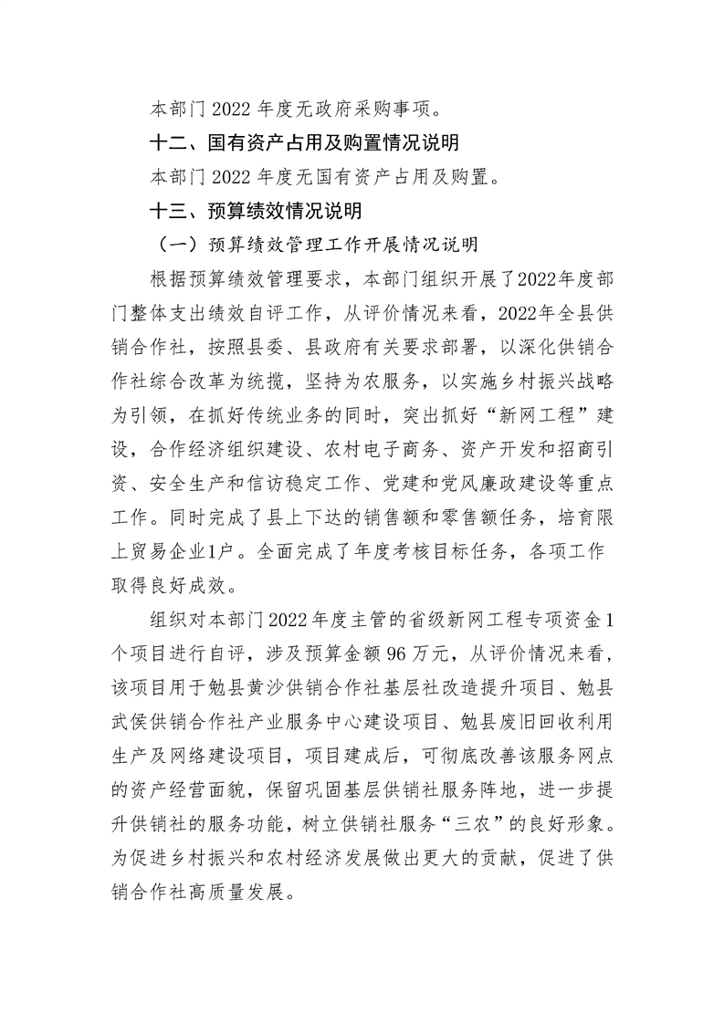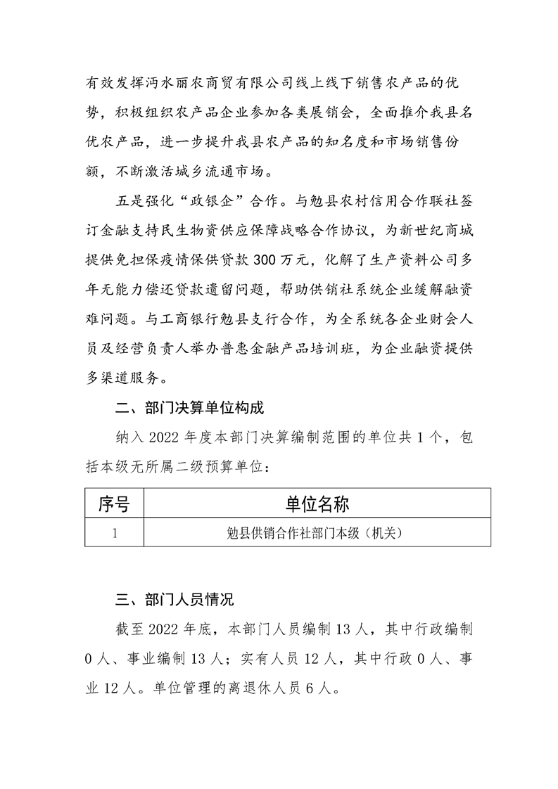 勉县供销合作社2022年度部门决算公开