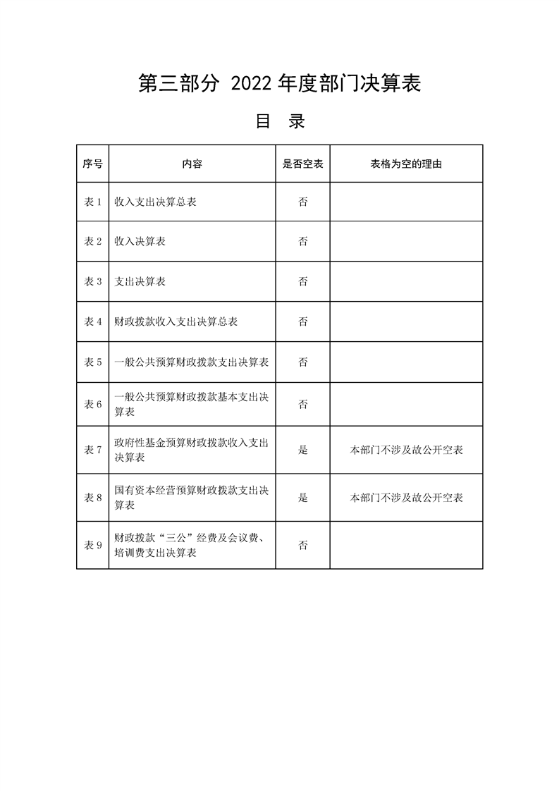 2022年县级部门决算公开目录
