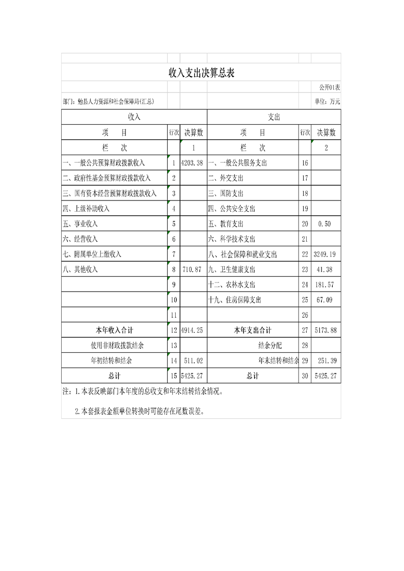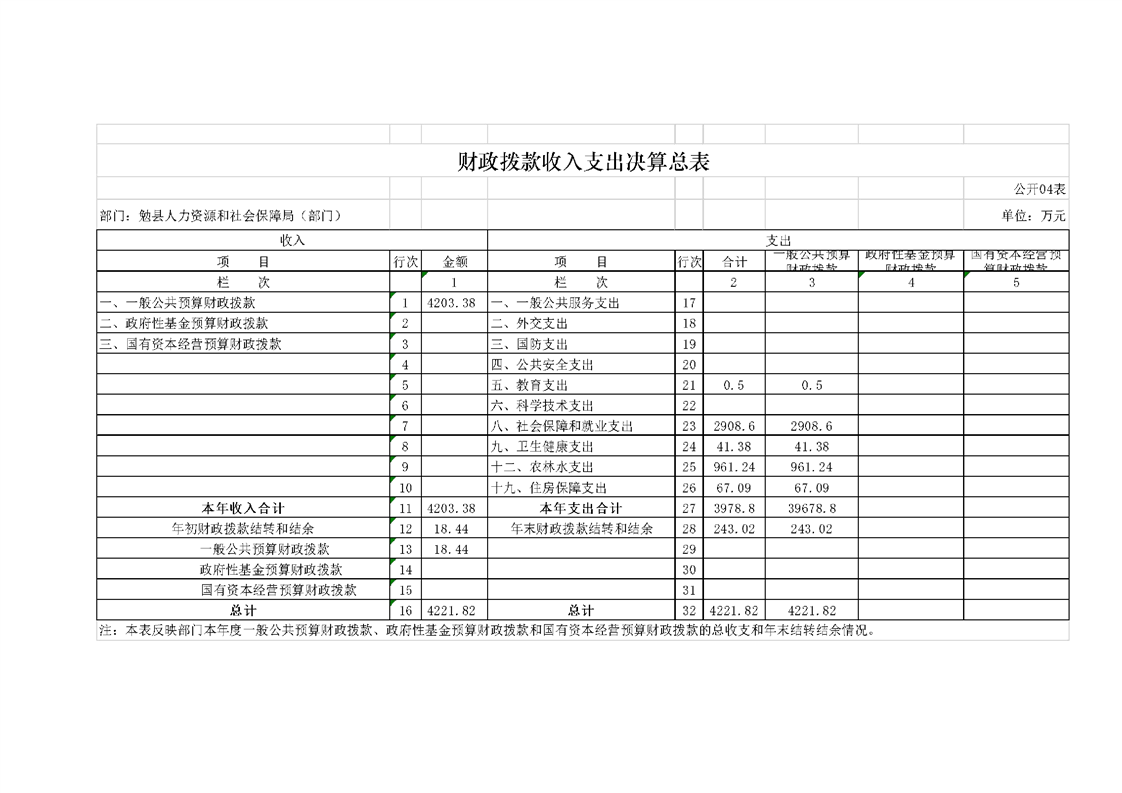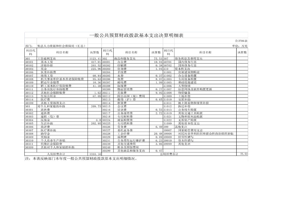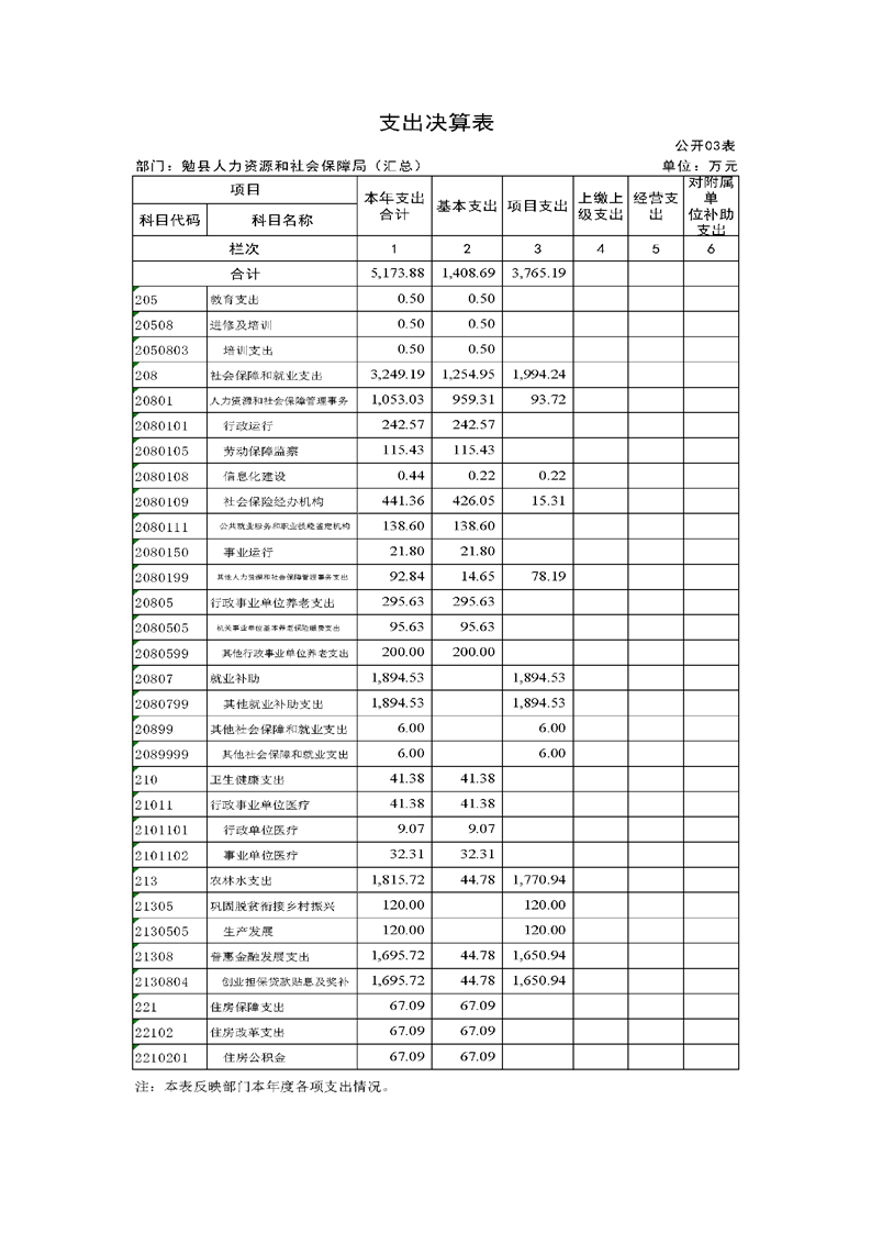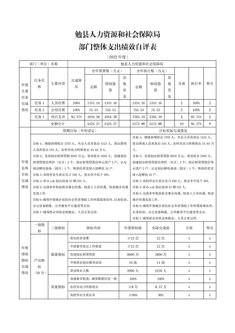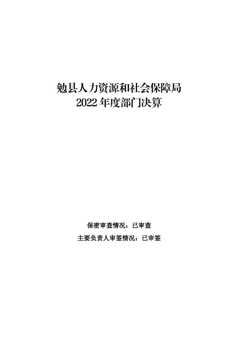 勉县人力资源和社会保障局2022年度部门决算公开
