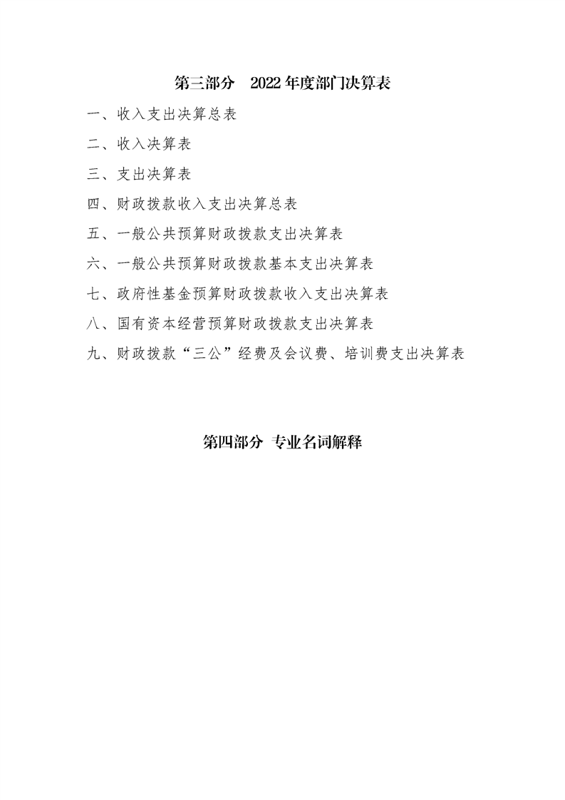 2022年县级部门决算公开目录