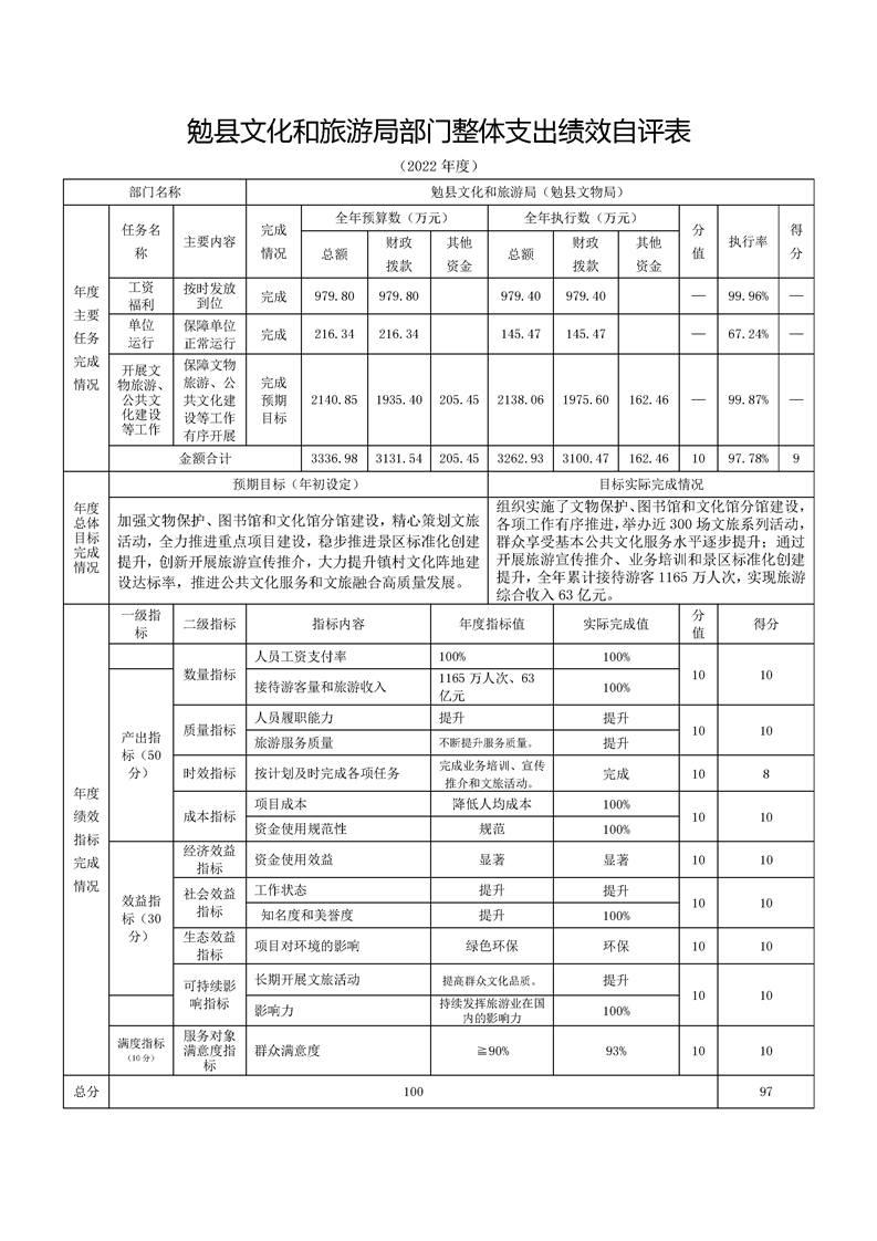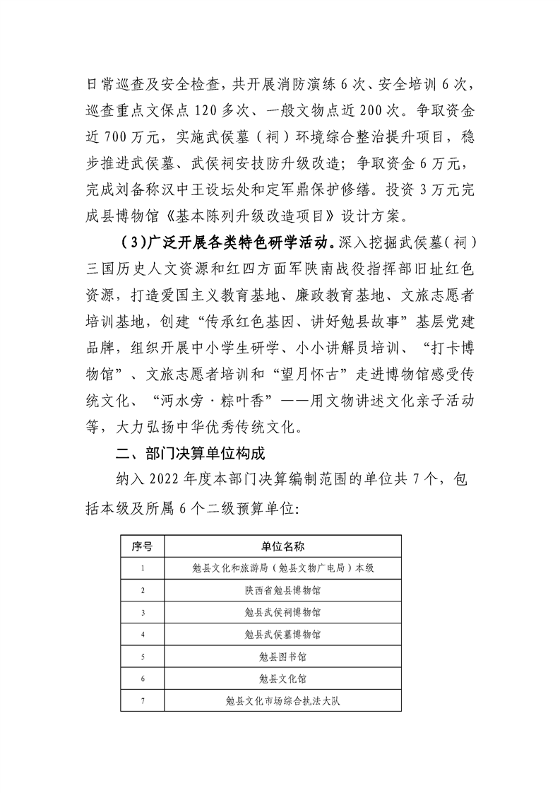 勉县文化和旅游局(勉县文物局)2022年度部门决算公开