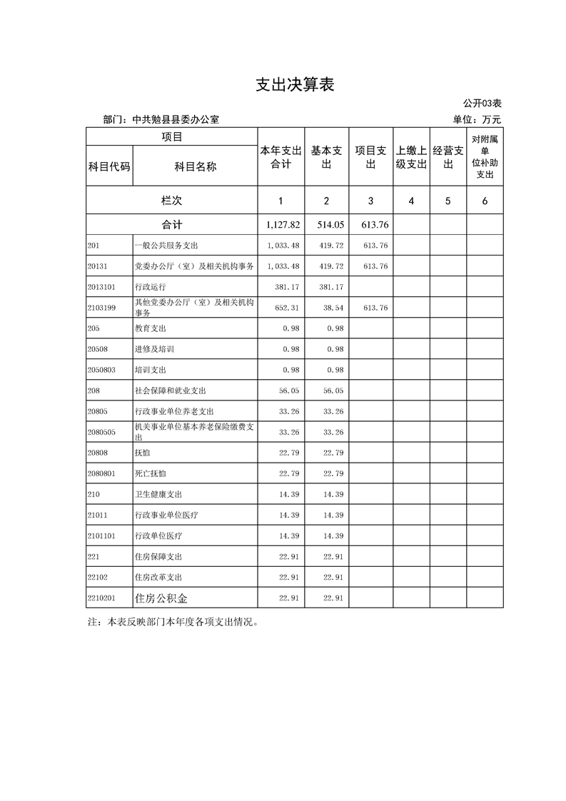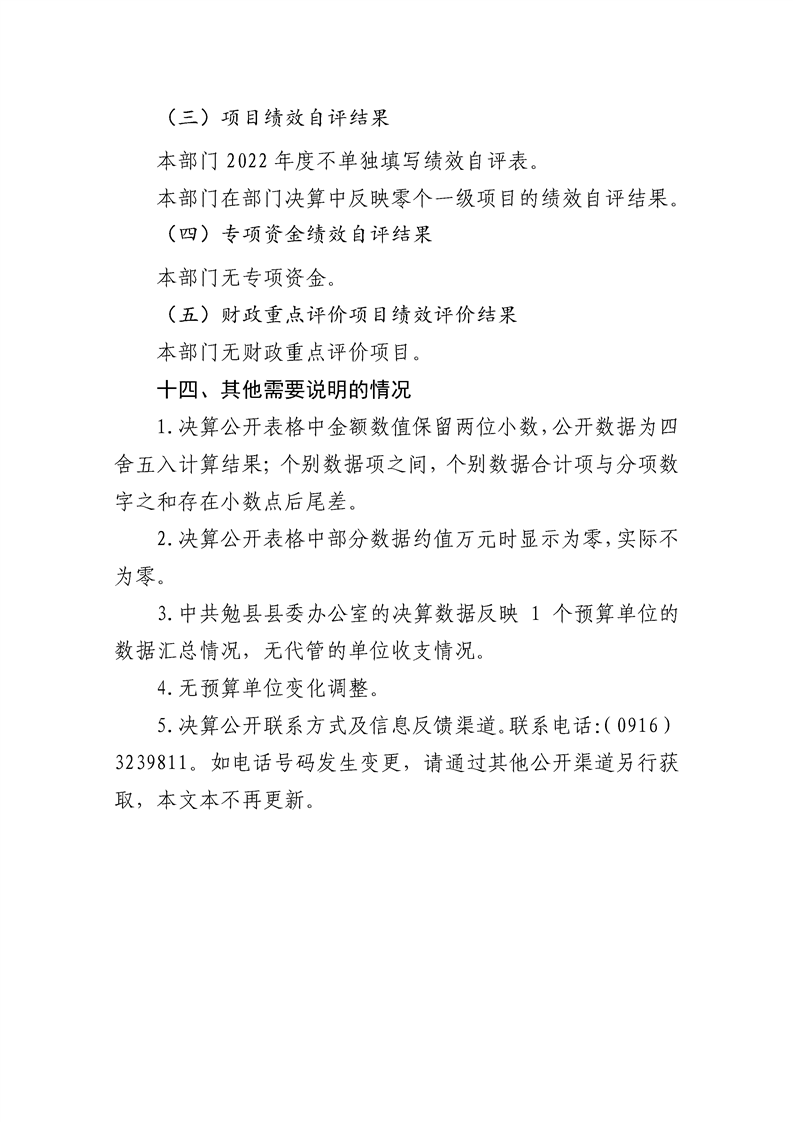 中共勉县县委办公室2022年度部门决算公开
