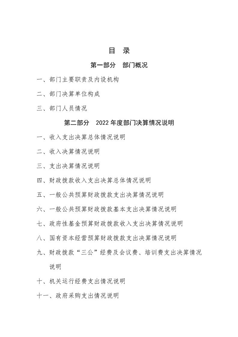 2022年县级部门决算公开目录