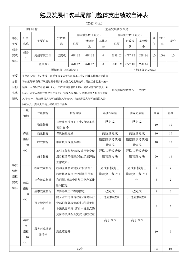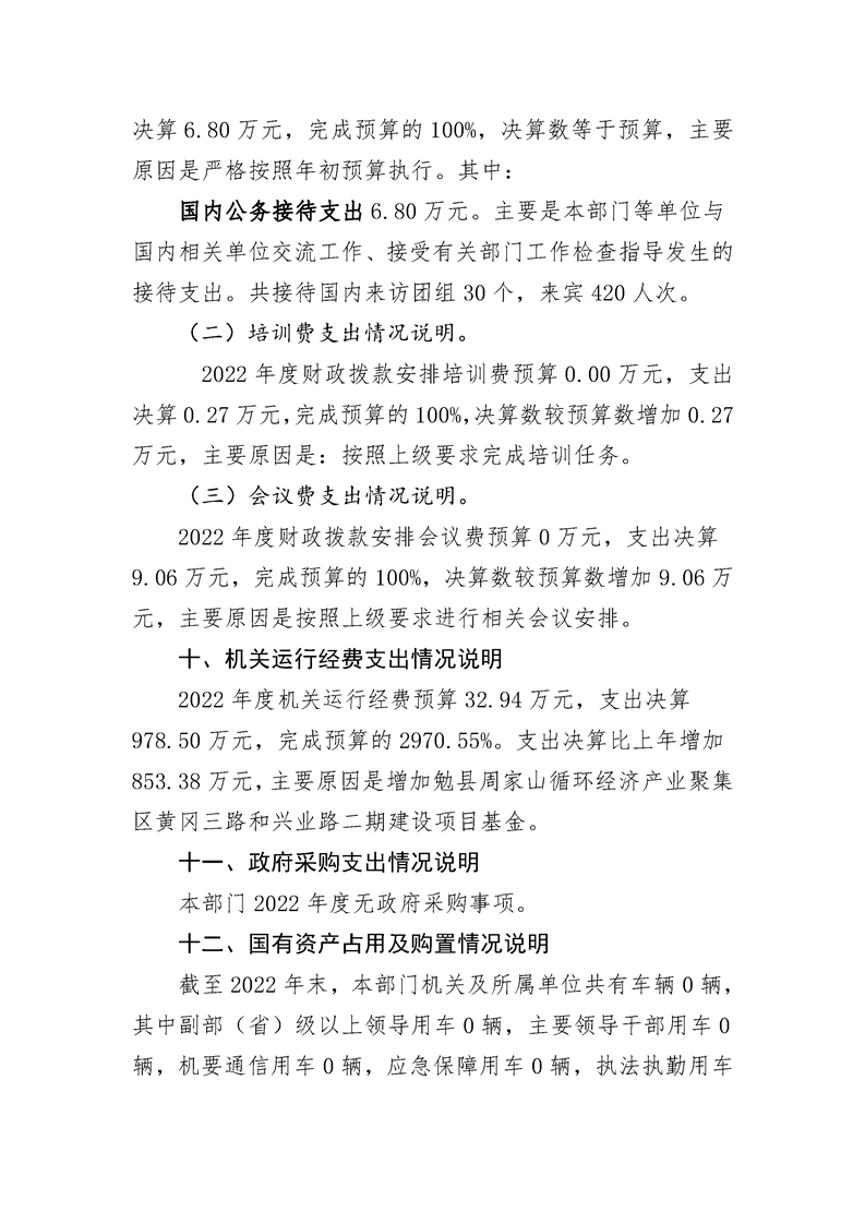 勉县发展和改革局2022年度部门决算公开