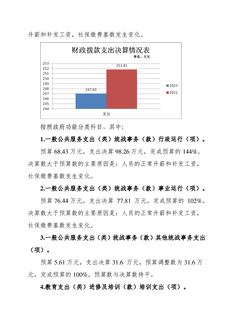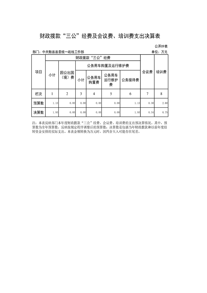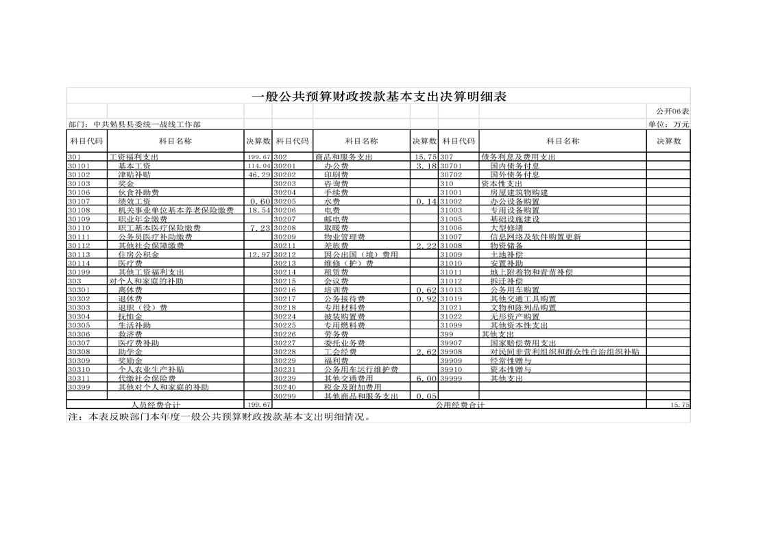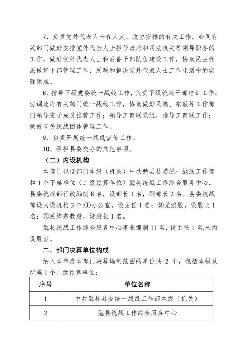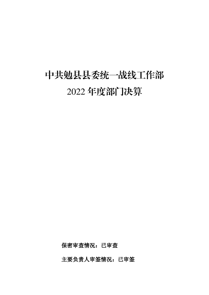 中共勉县县委统一战线工作部2022年度部门决算公开