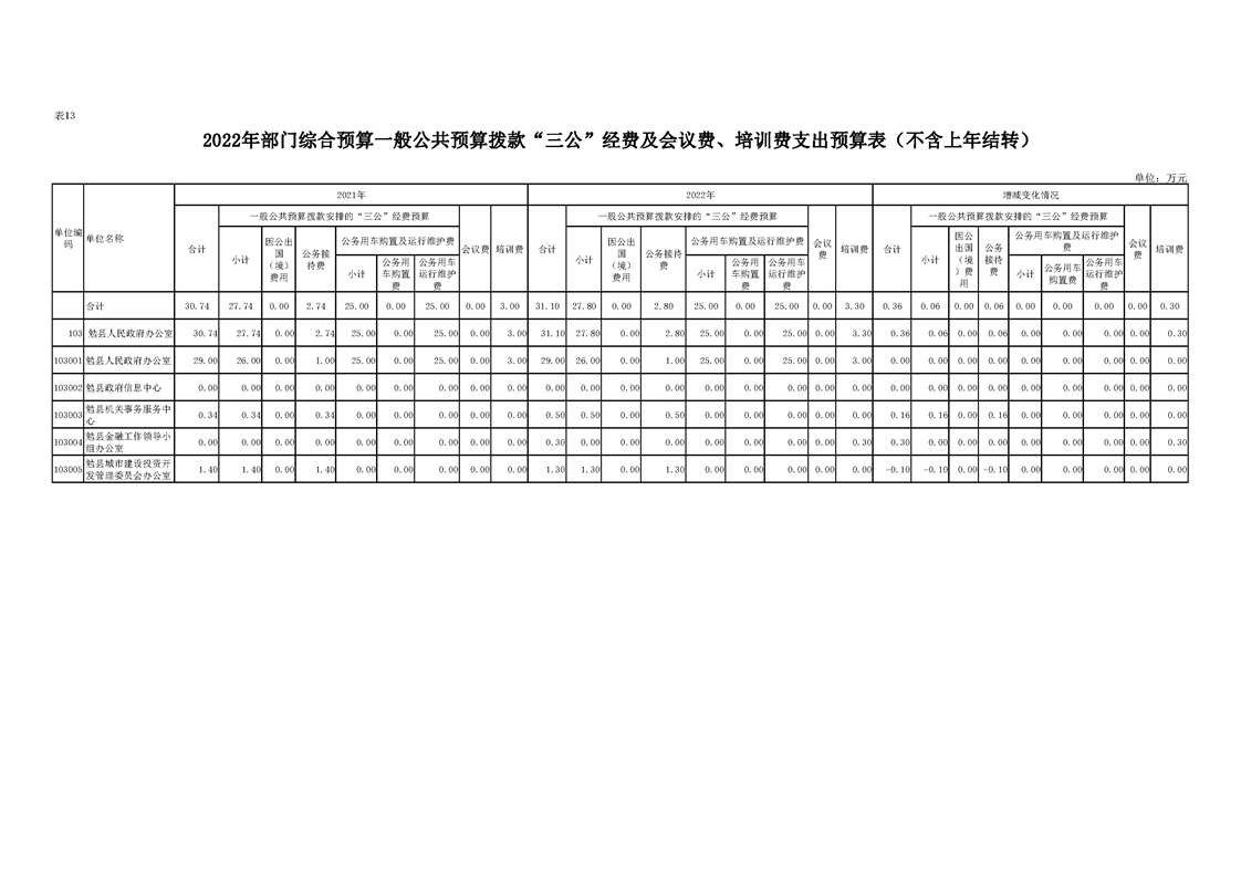 勉县人民政府办公室2022年部门综合预算公开