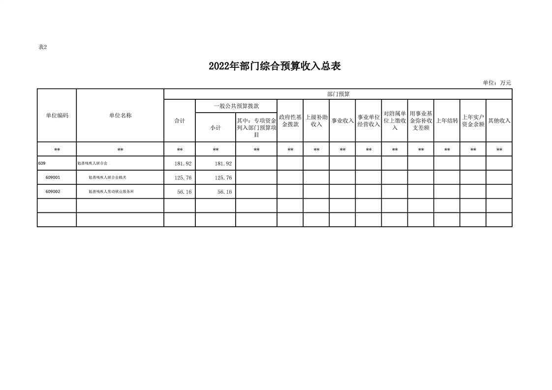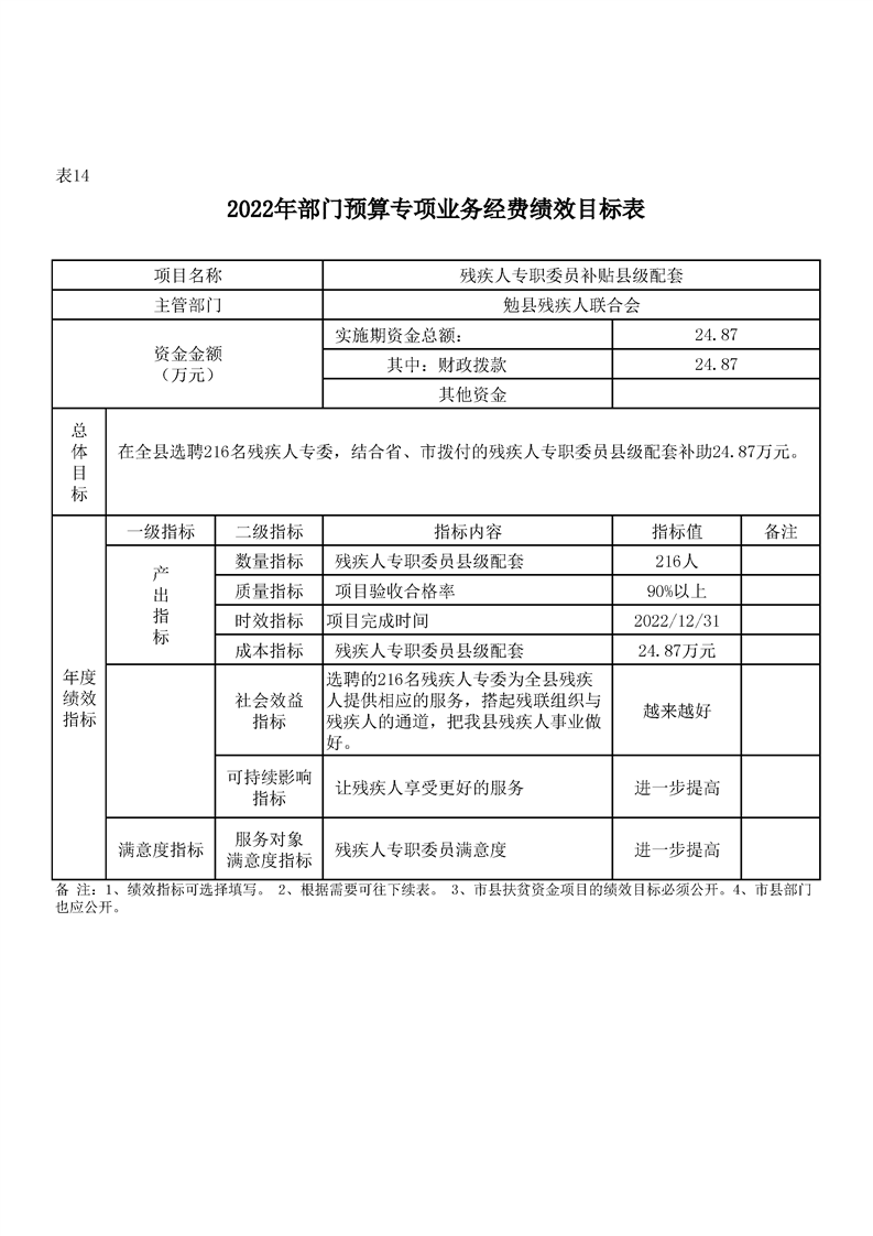 勉县残疾人联合会2022年部门综合预算公开