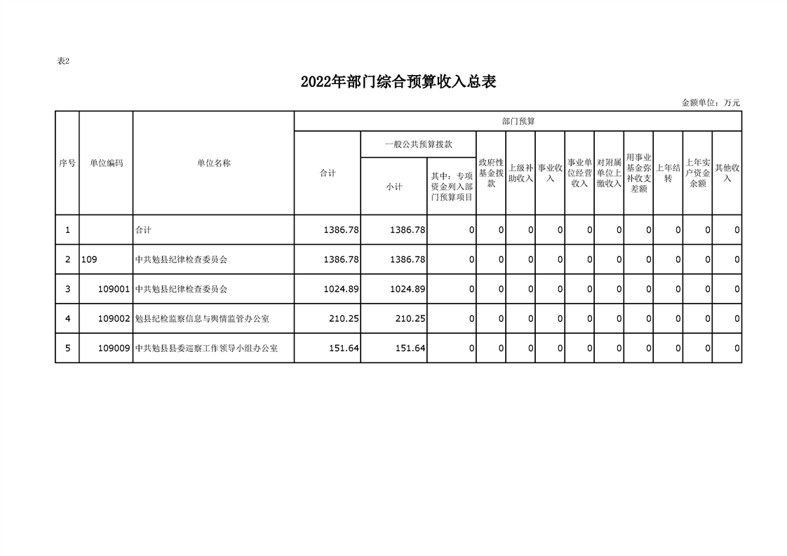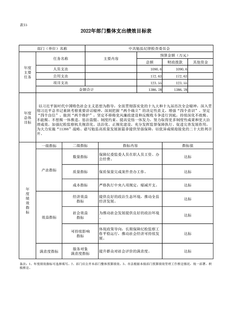 中共勉县纪律检查委员会(勉县监察委员会)2022年部门综合预算公开