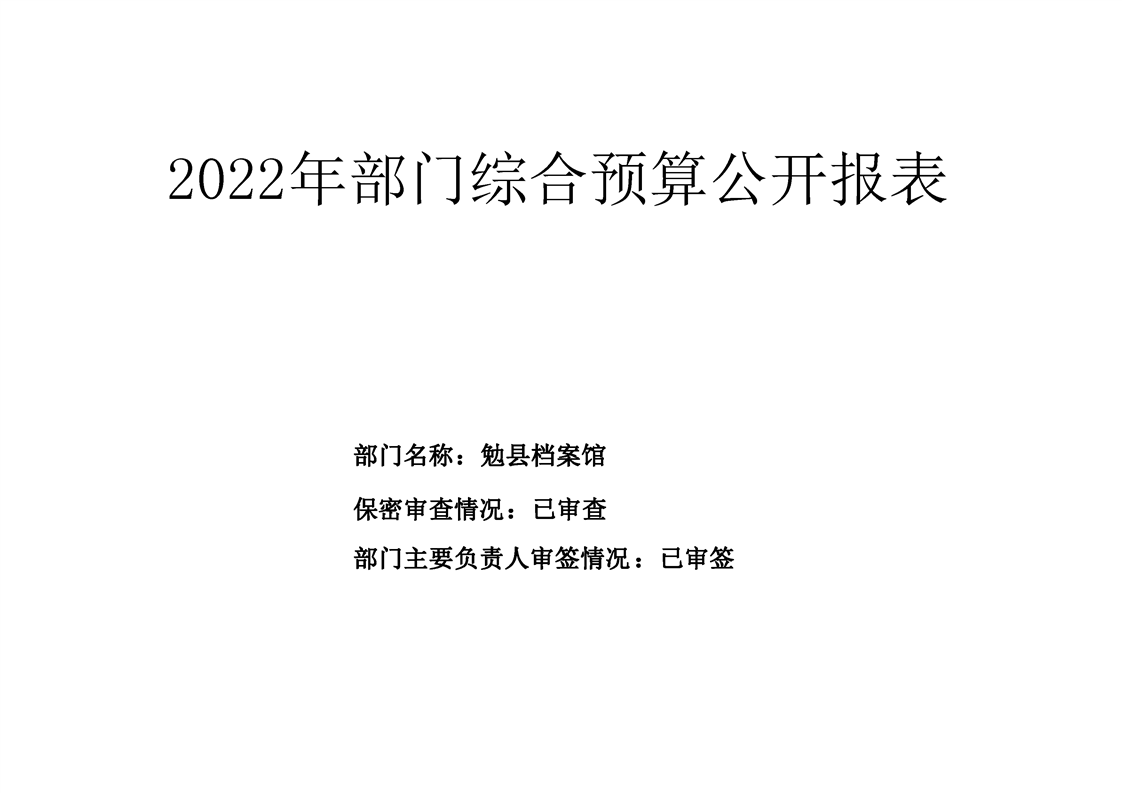 勉县档案馆2022年部门综合预算公开