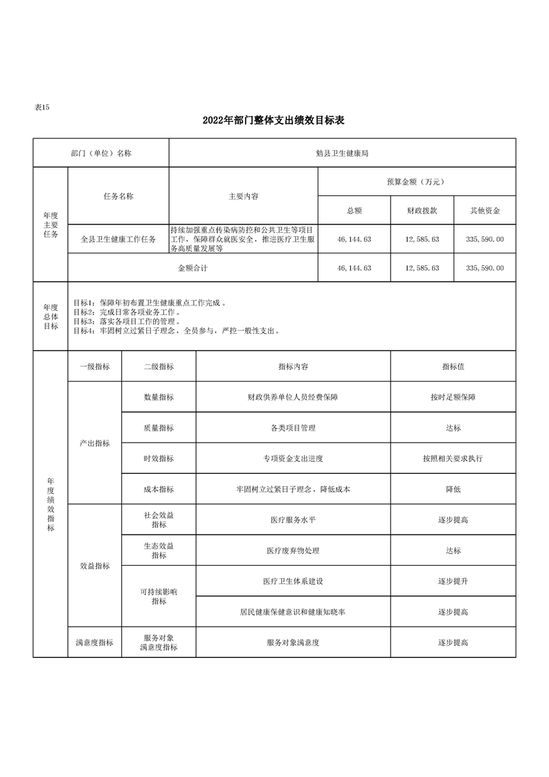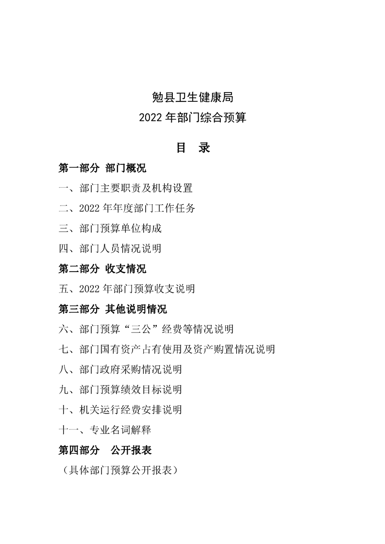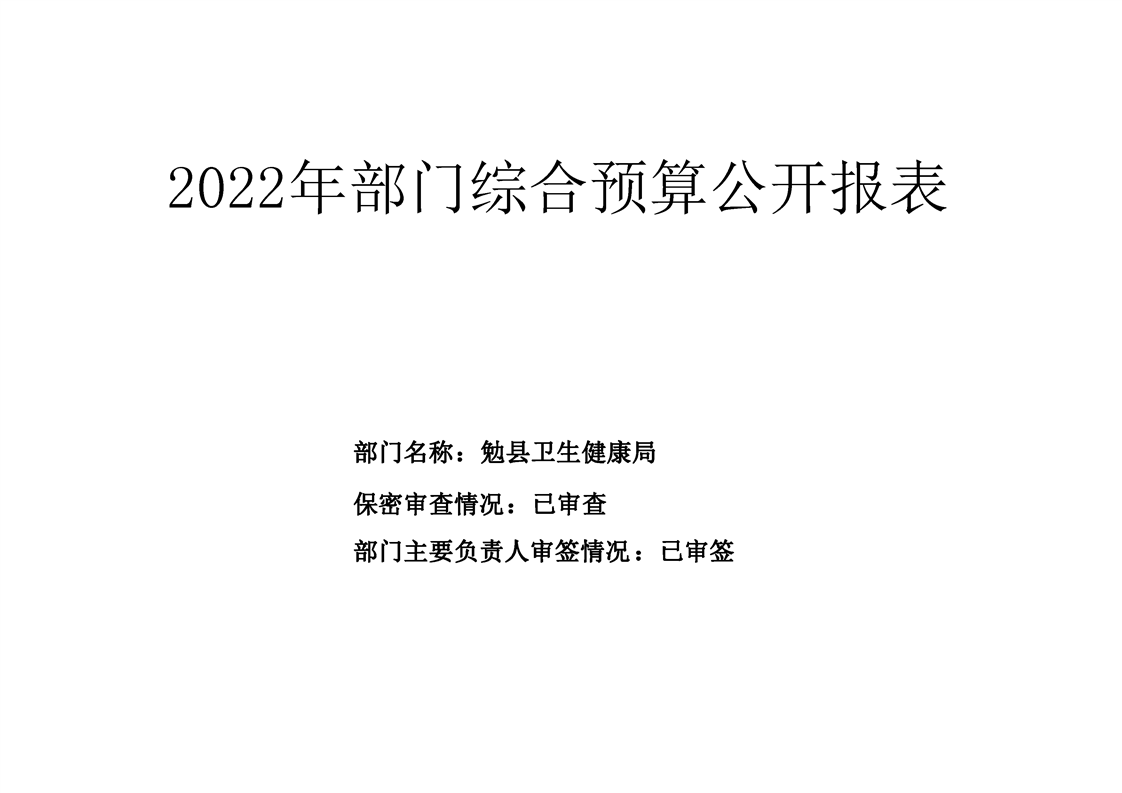 勉县卫生健康局2022年部门综合预算公开