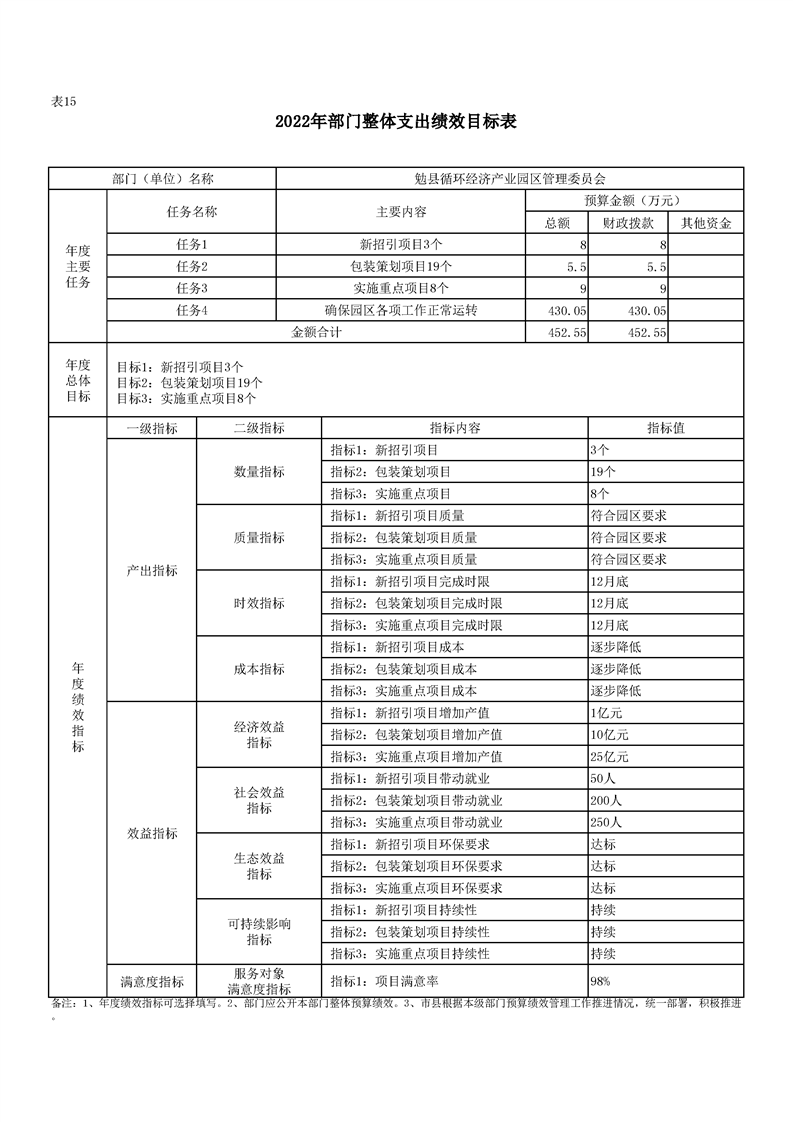 勉县循环经济产业园区管理委员会2022年部门综合预算公开