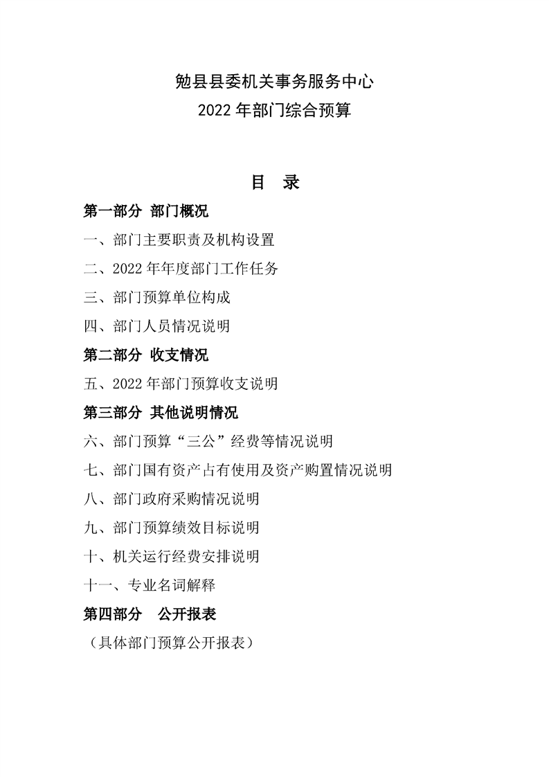 勉县县委机关事务服务中心2022年部门综合预算公开
