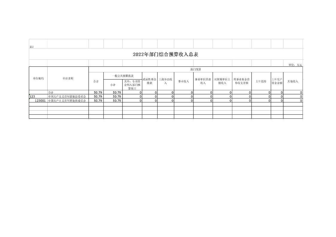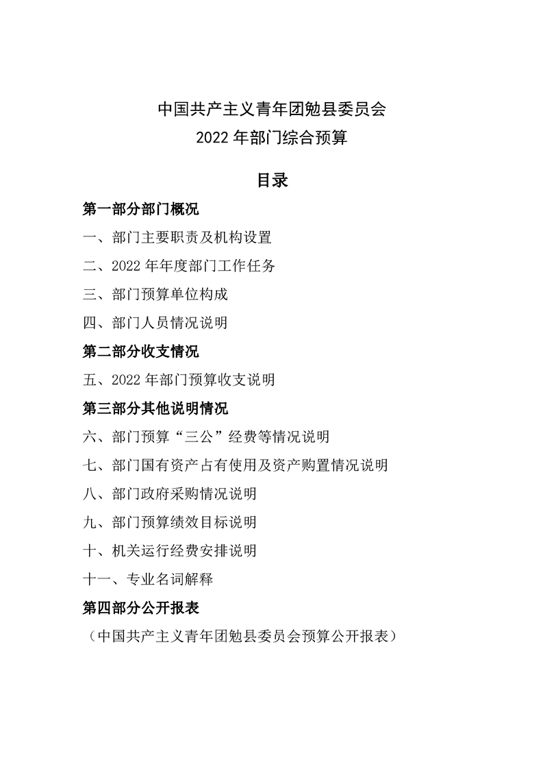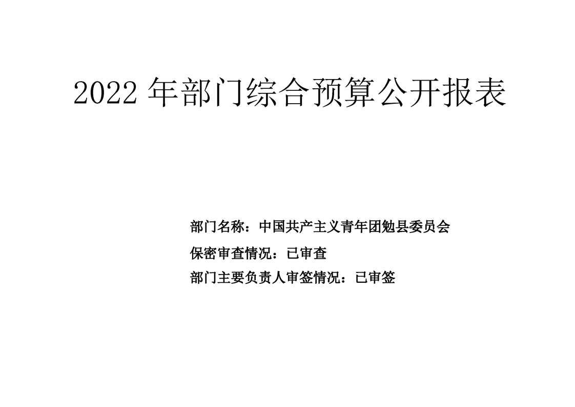 中国共产主义青年团勉县委员会2022年部门综合预算公开