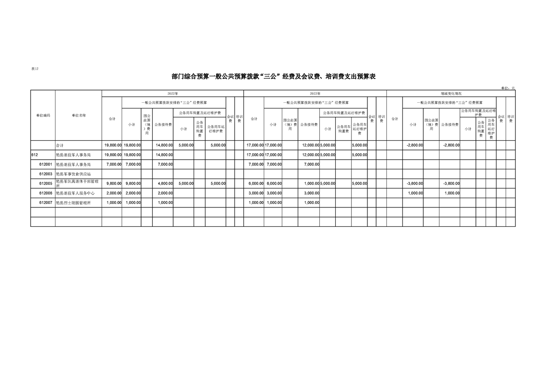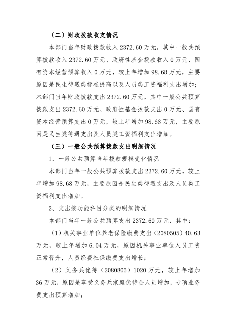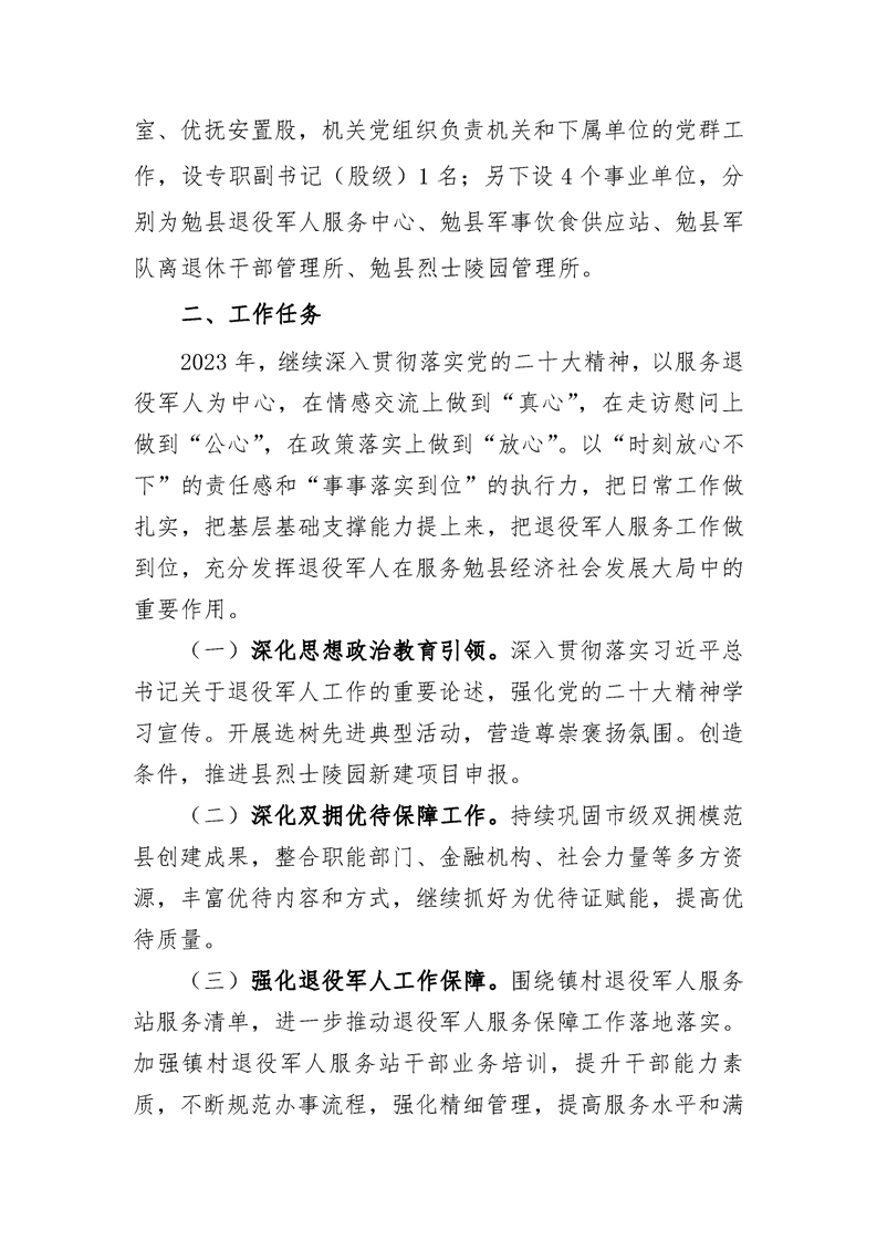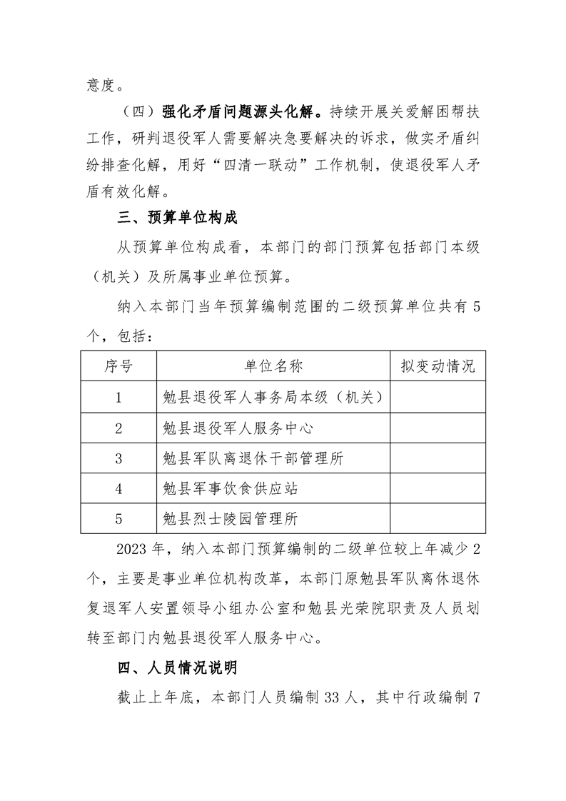 勉县退役军人事务局2023年部门预算公开说明