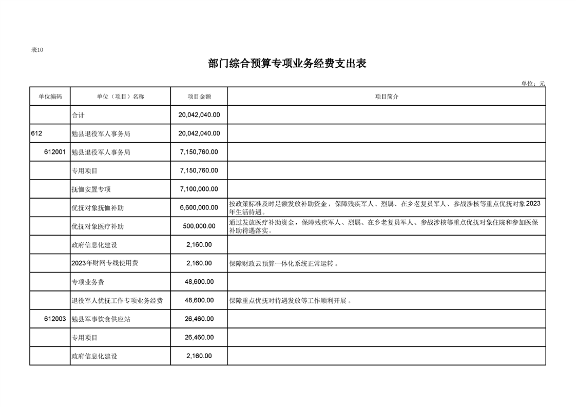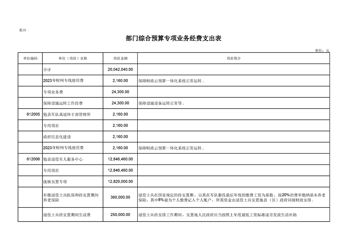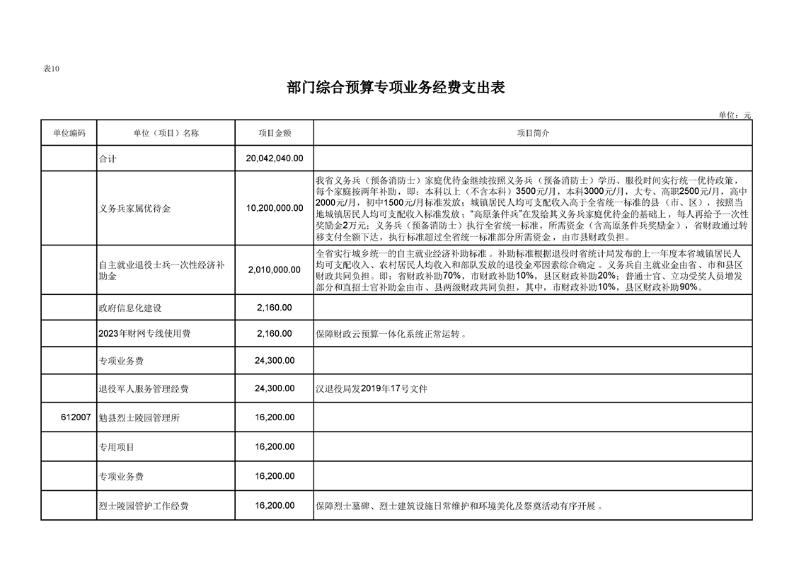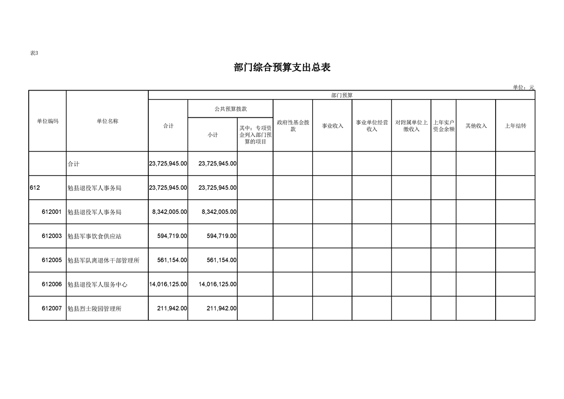 勉县退役军人事务局2023年部门预算公开说明