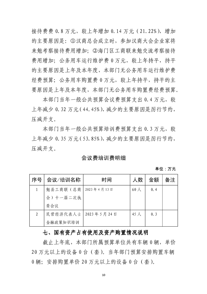 勉县工商业联合会2023年部门预算公开说明