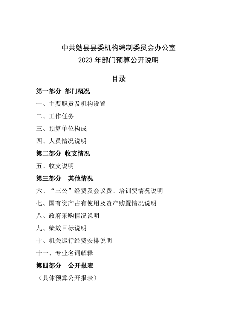 中共勉县县委机构编制委员会办公室2023年部门预算公开说明