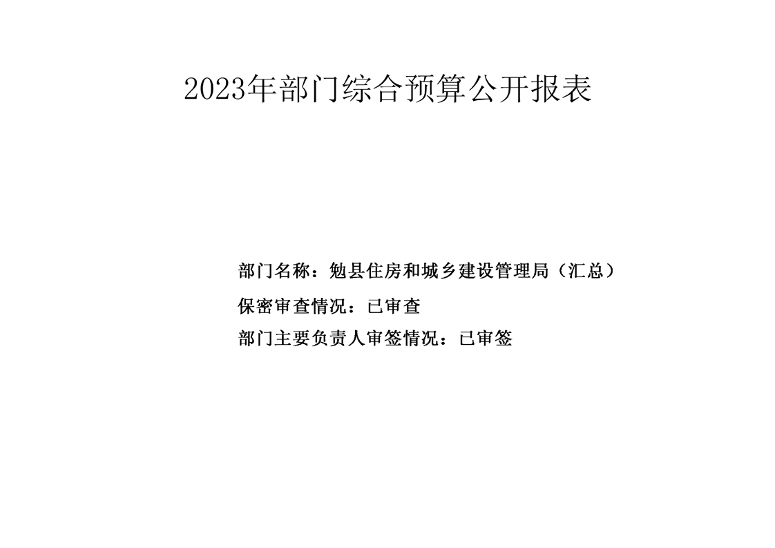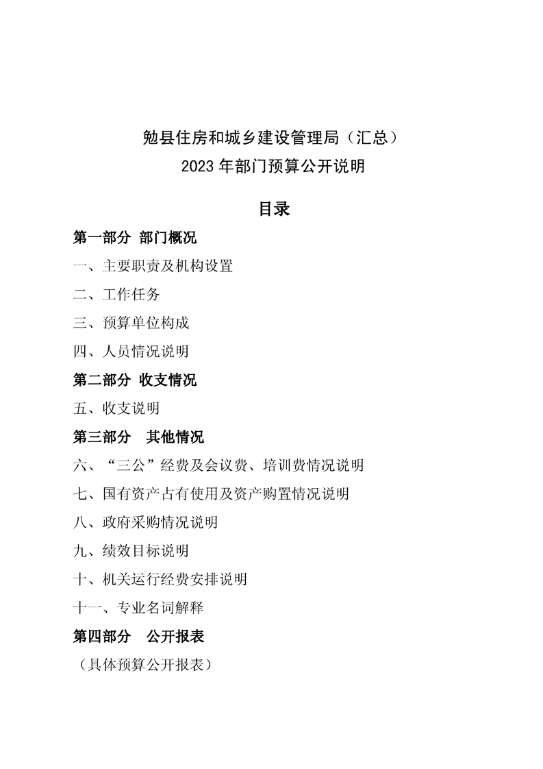 勉县住房和城乡建设管理局2023年部门预算公开说明