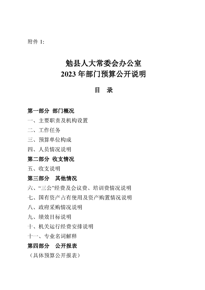 勉县人大常委会办公室2023年部门预算公开说明