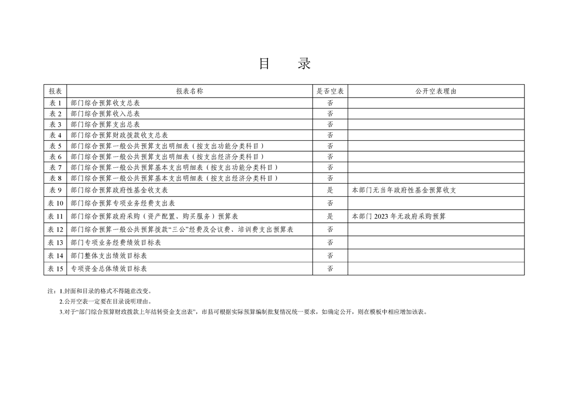 2023年县级部门预算公开目录