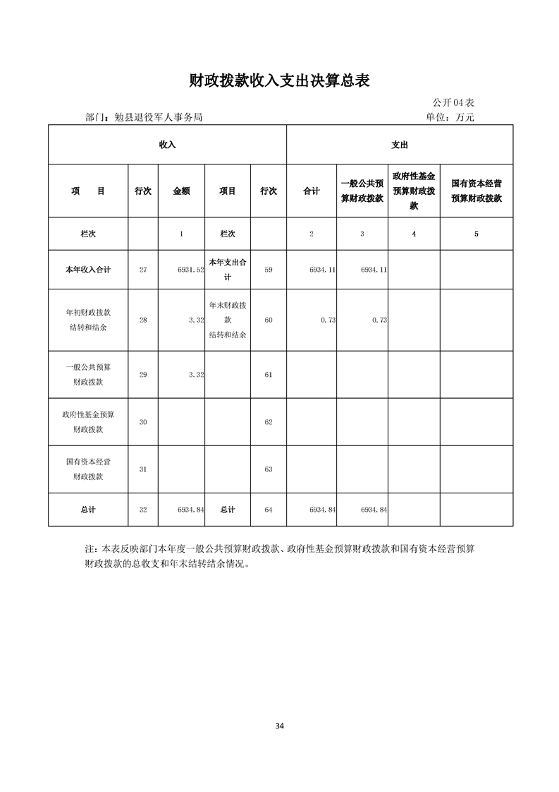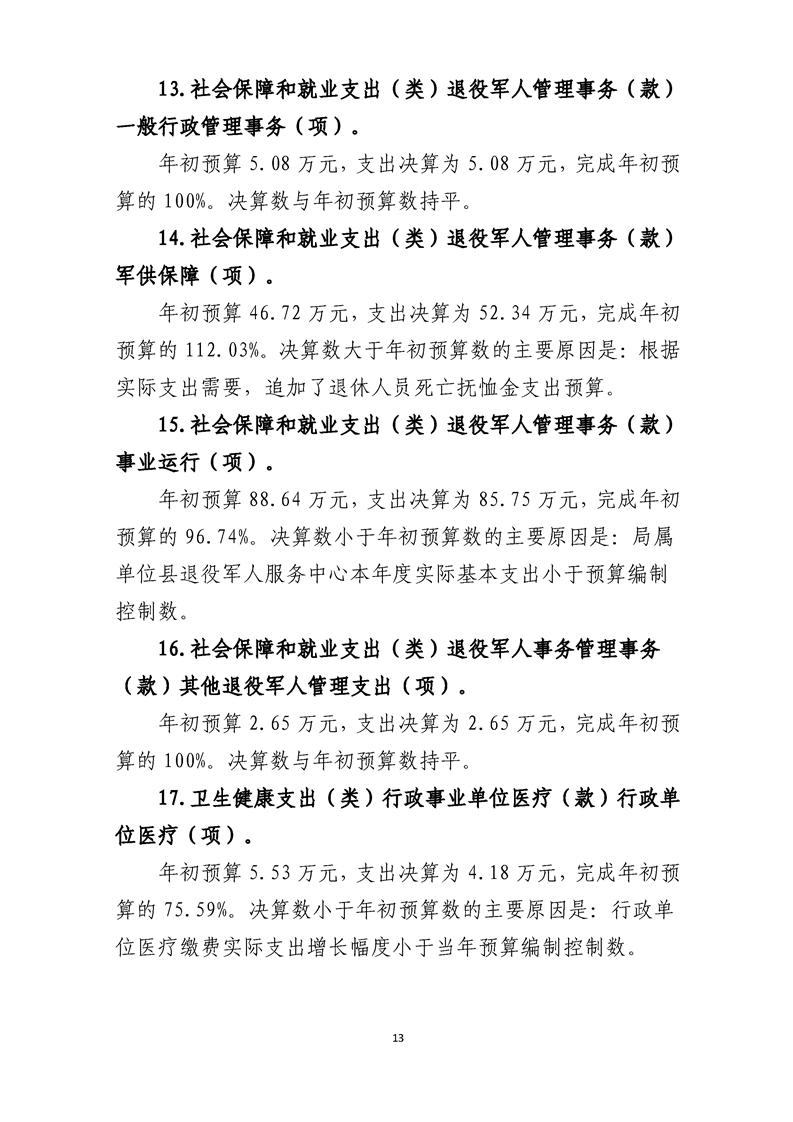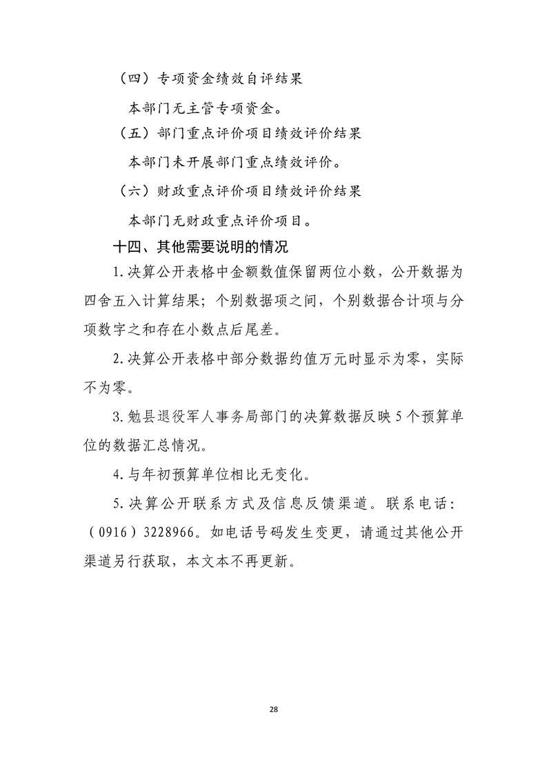 勉县退役军人事务局2023年度部门决算公开