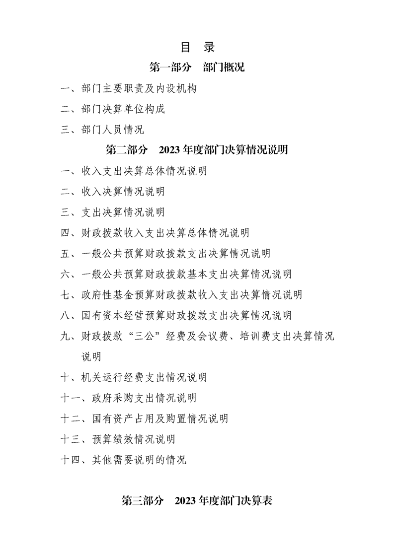 2023年县级部门决算公开目录