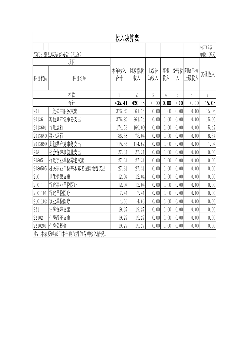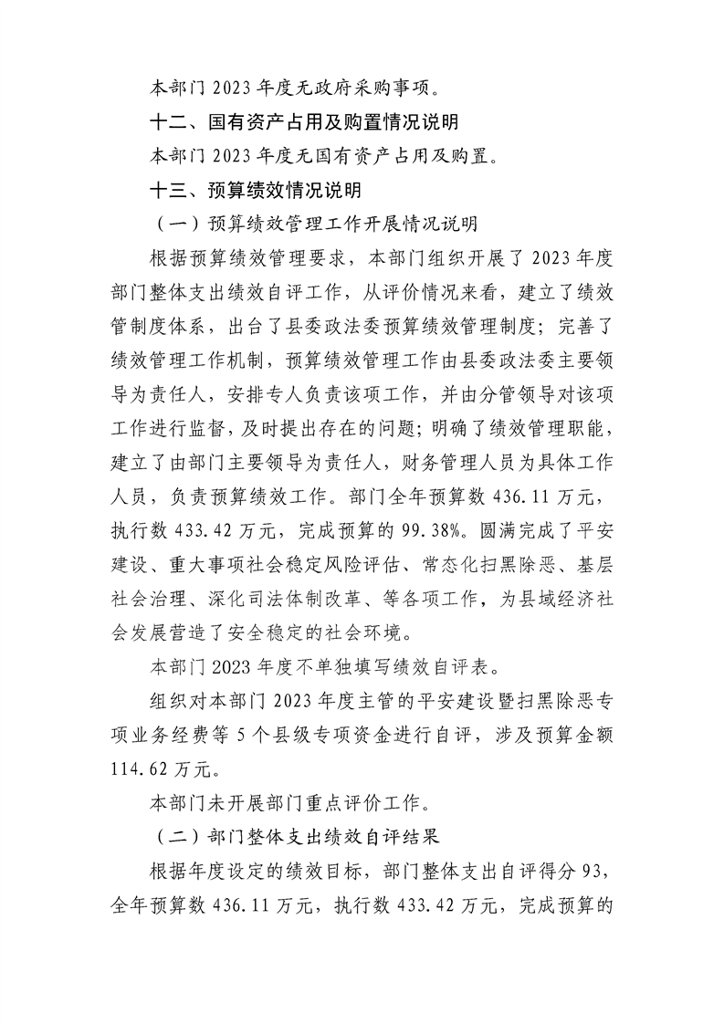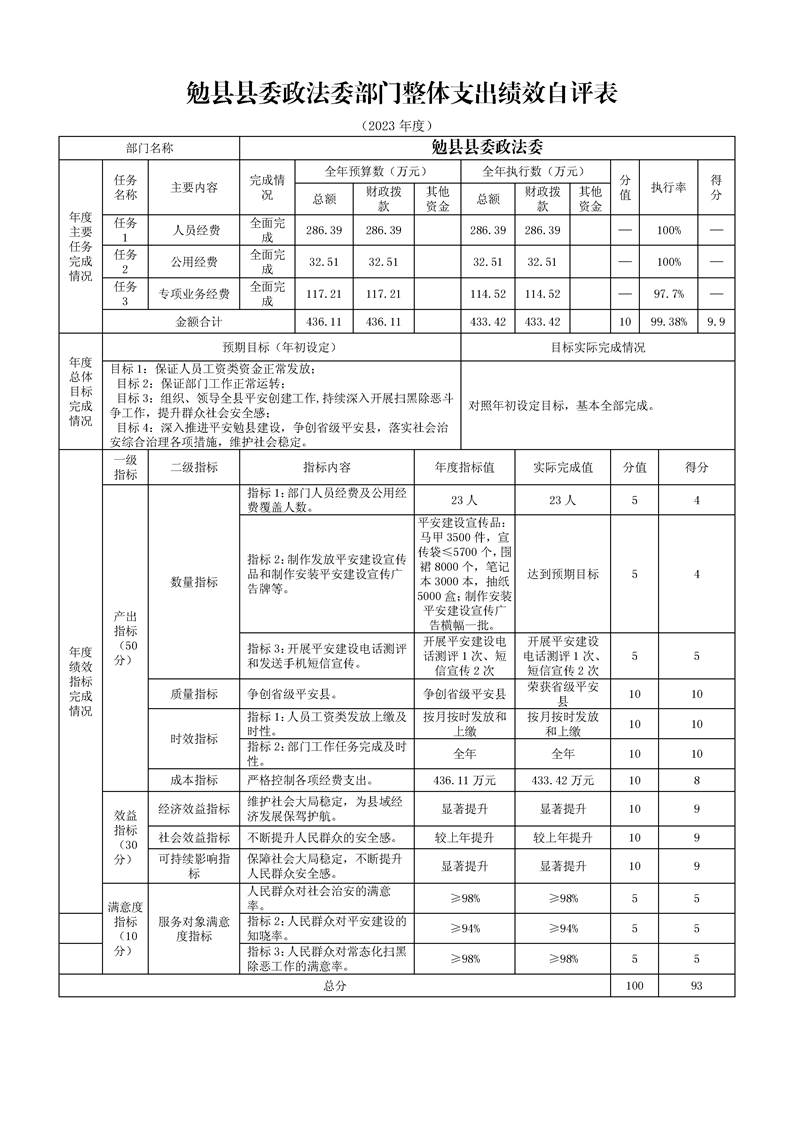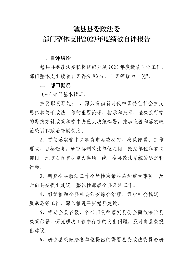 勉县县委政法委2023年度部门决算公开