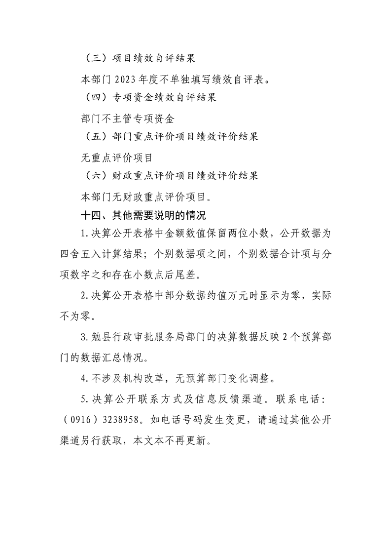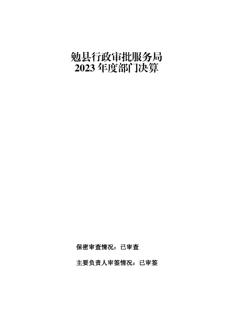 勉县行政审批服务局2023年度部门决算公开