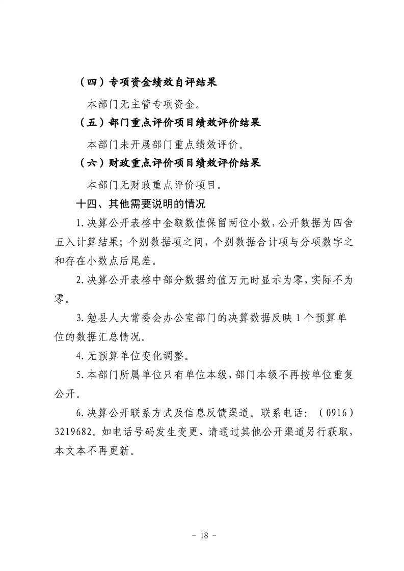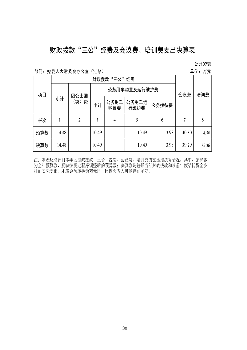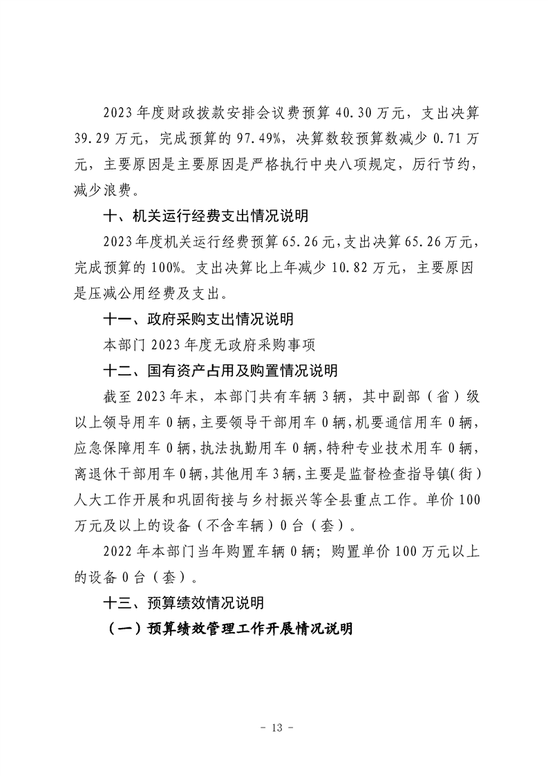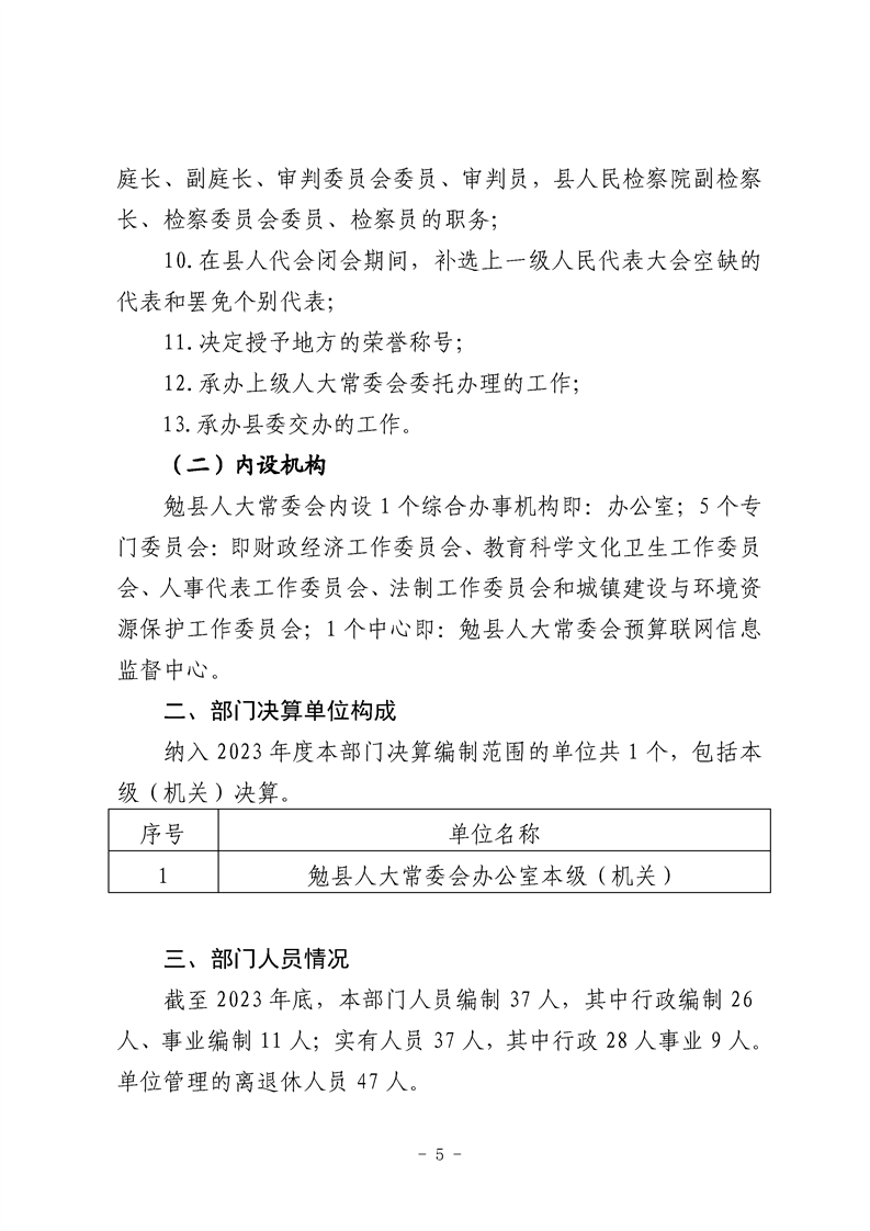 勉县人大常委会办公室2023年度部门决算公开