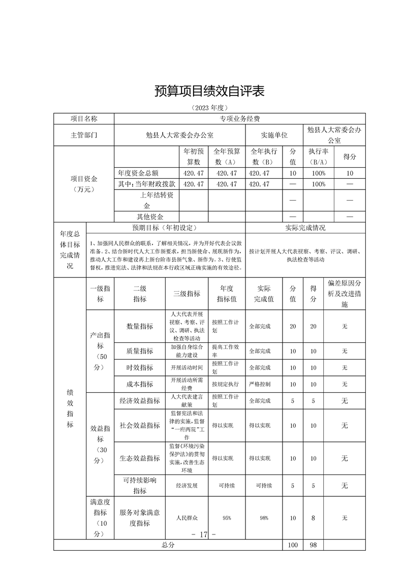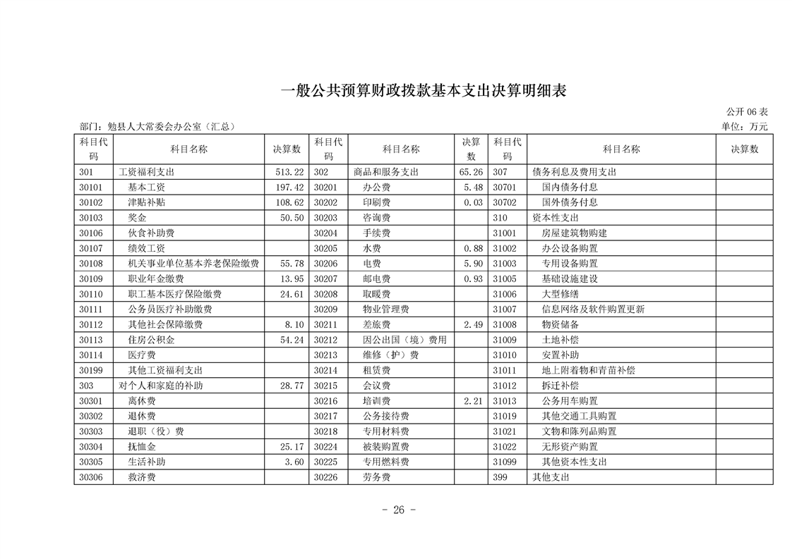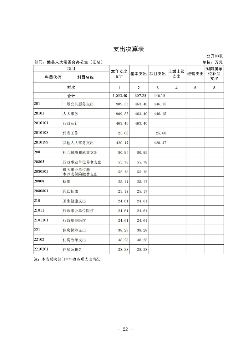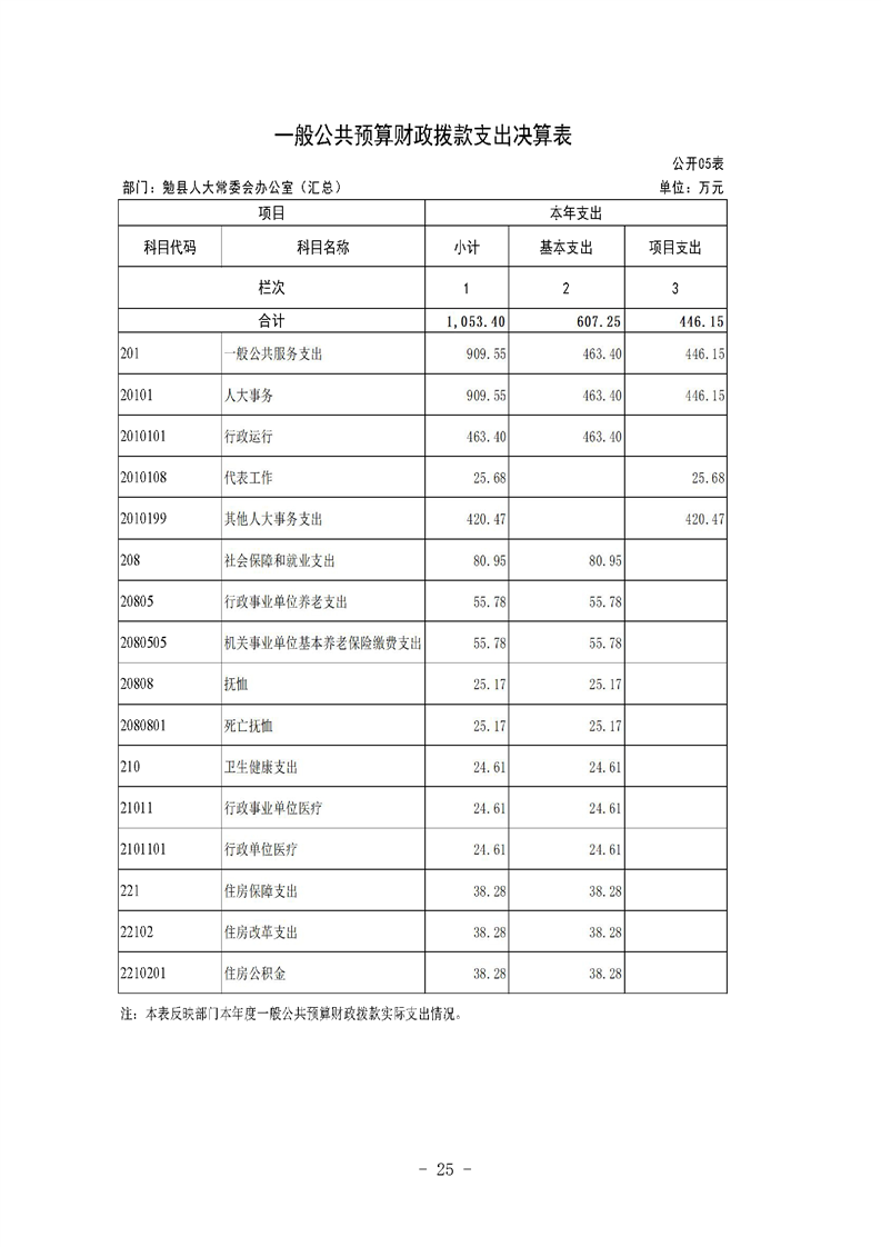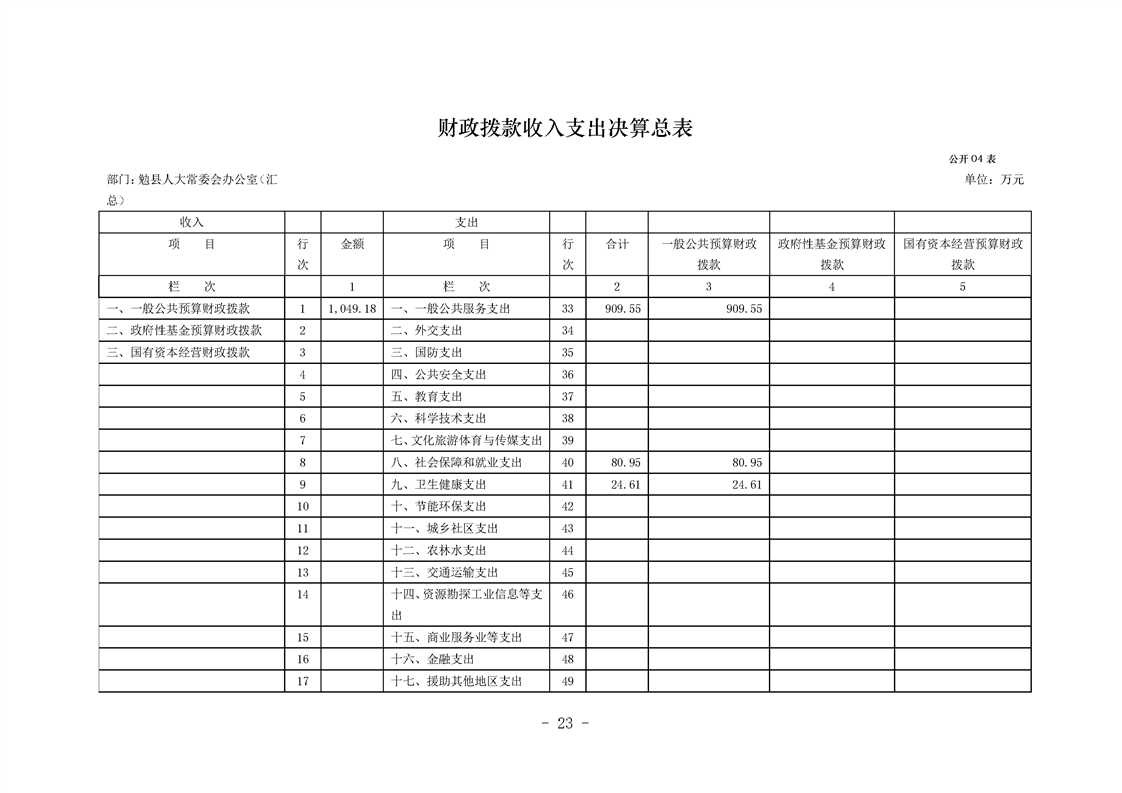 勉县人大常委会办公室2023年度部门决算公开
