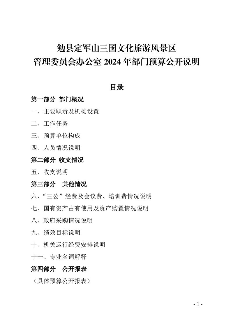 勉县定军山三国文化旅游风景区管理委员会办公室2024年部门预算公开说明