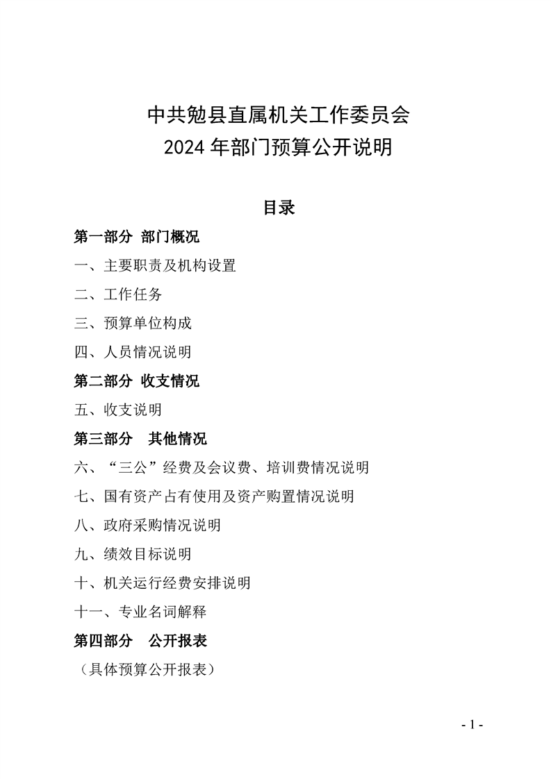 中共勉县直属机关工作委员会2024年部门预算公开说明