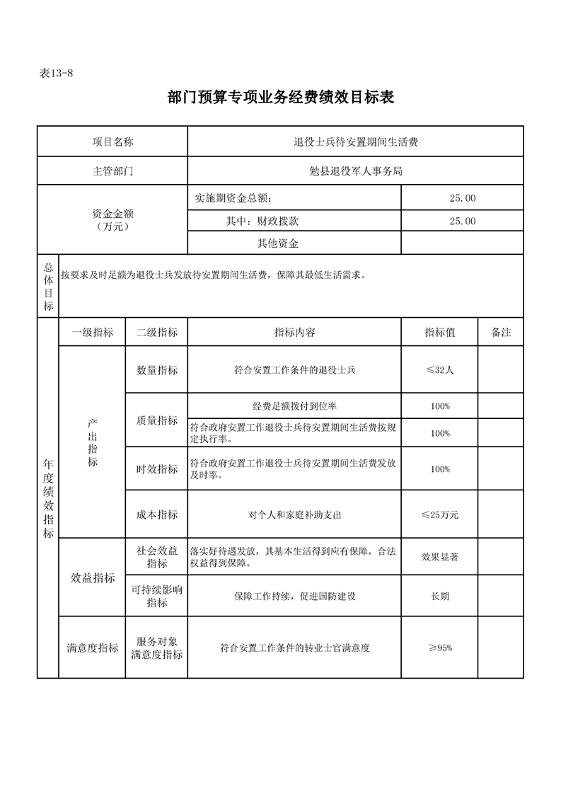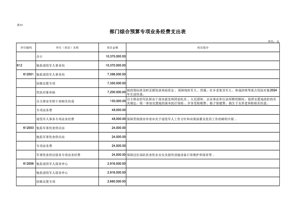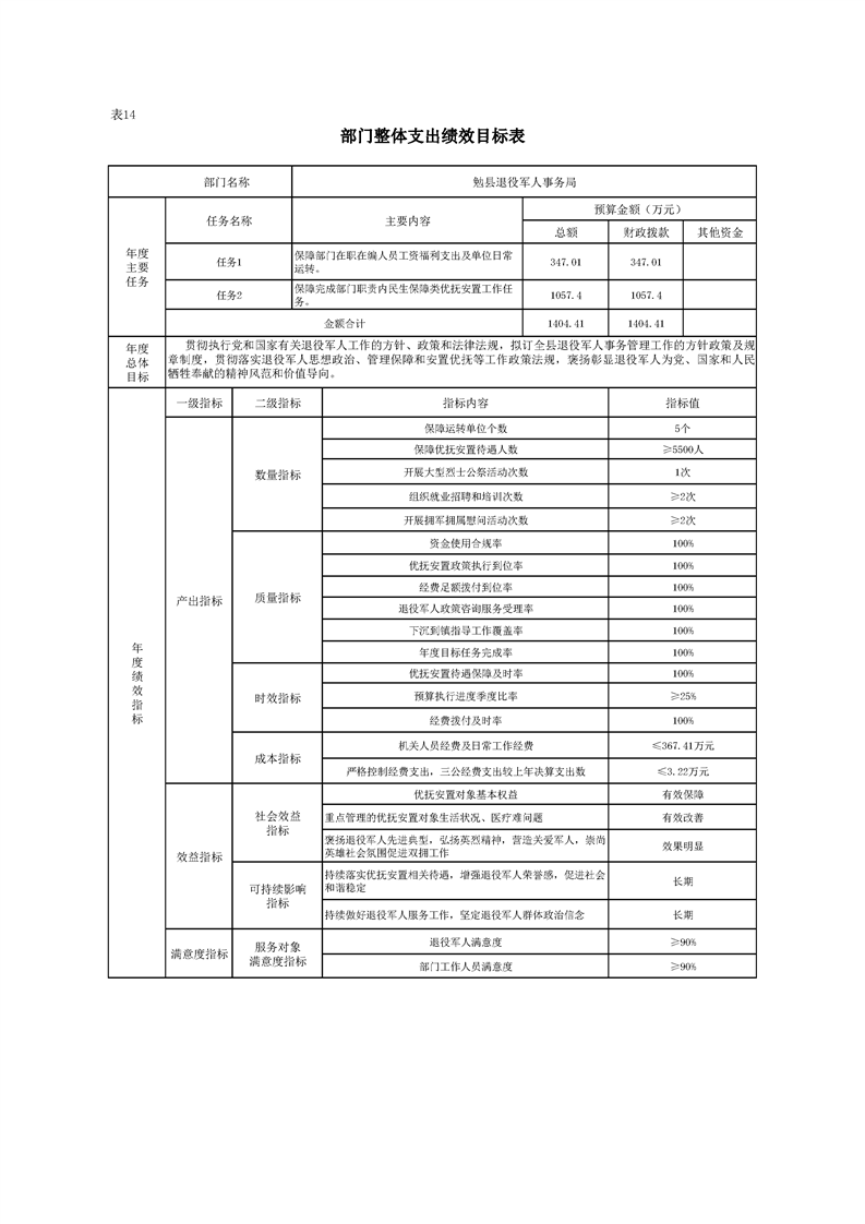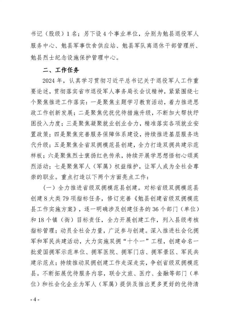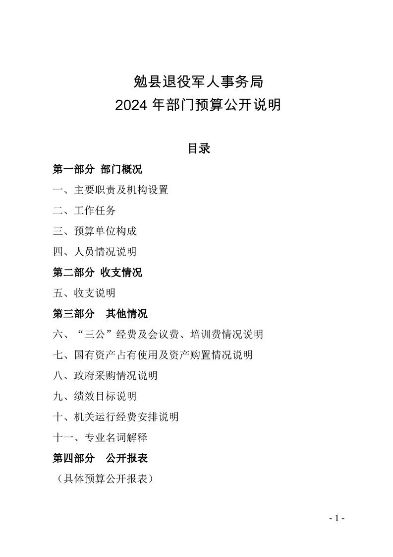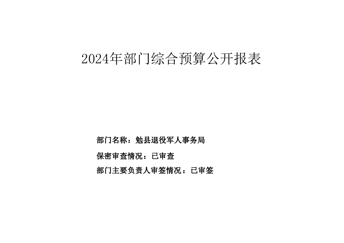 勉县退役军人事务局2024年部门预算公开