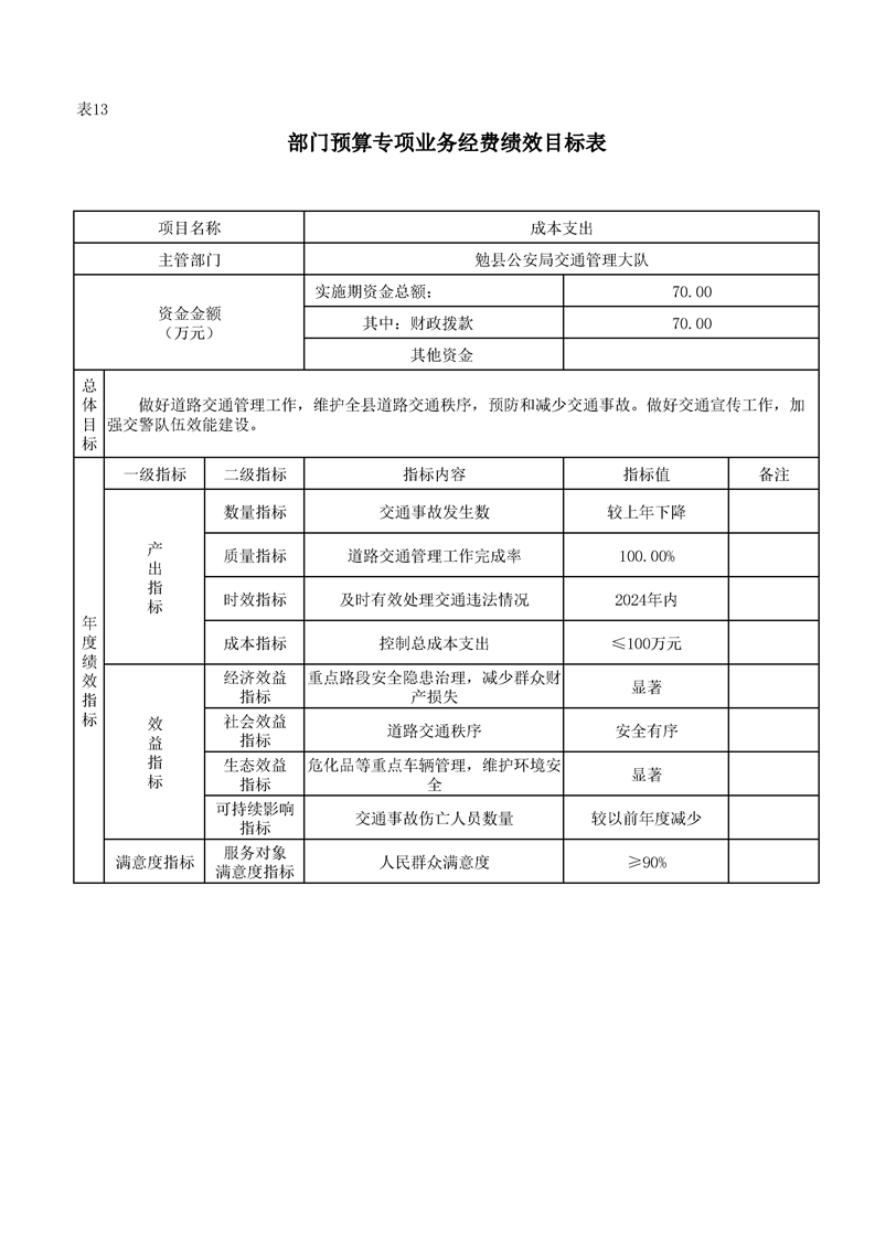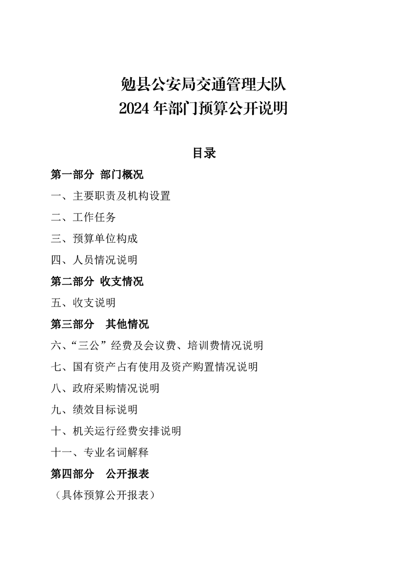 勉县公安局交通管理大队2024年部门预算公开说明