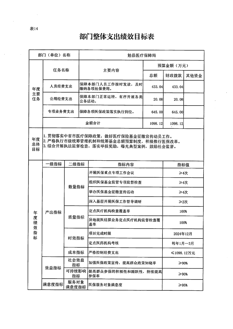 勉县医疗保障局2024年部门预算公开说明