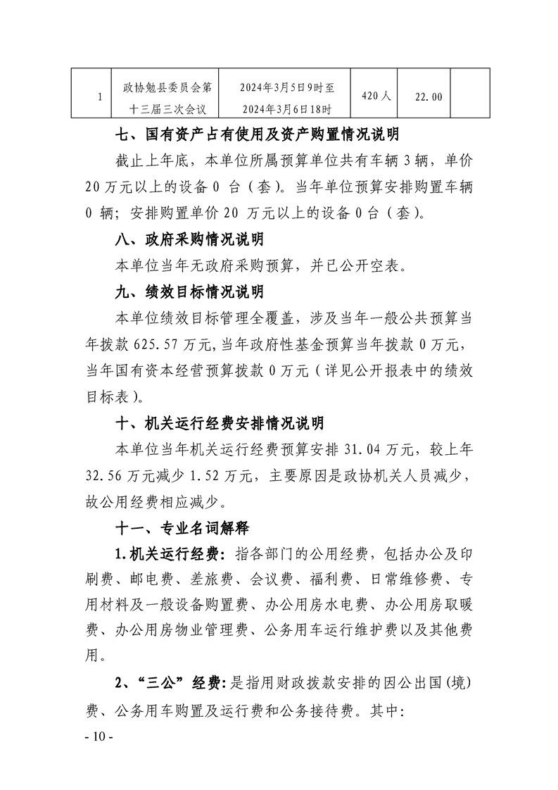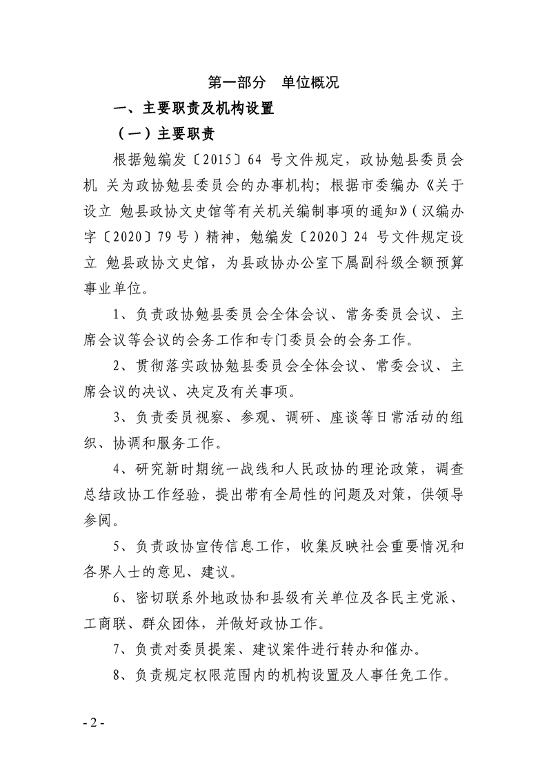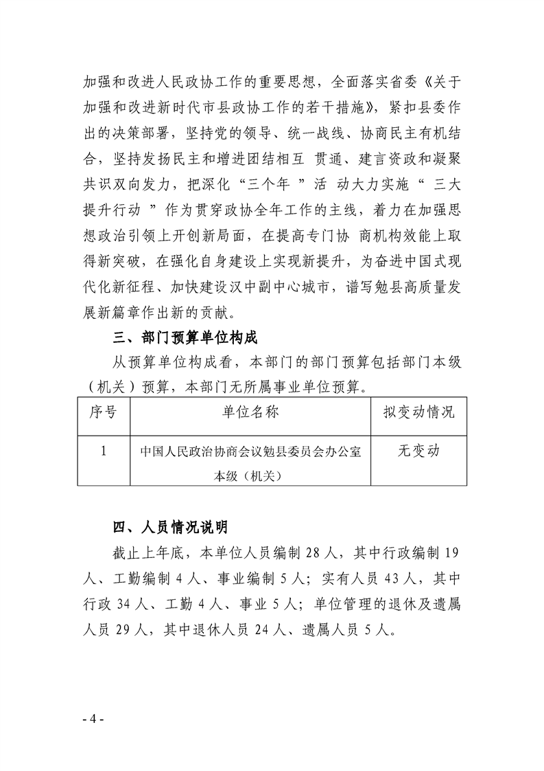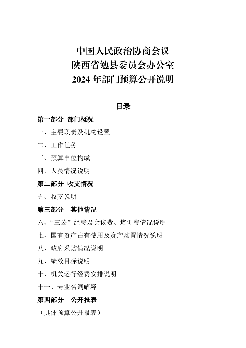 中国人民政治协商会议陕西省勉县委员会办公室2024年部门预算公开说明